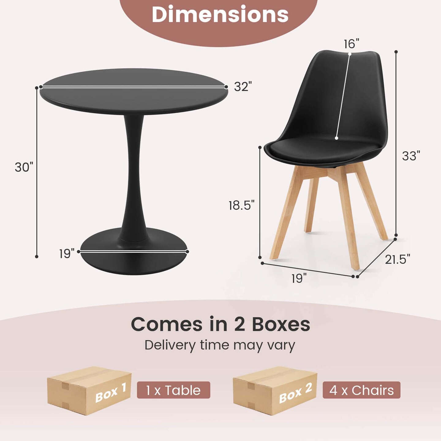 Costway 5 PCS Dining Set Modern Round Dining Table 4 Chairs for Small Space Kitchen