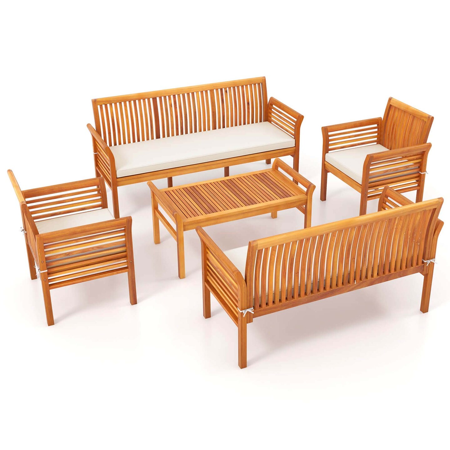 Costway 5 PCS Patio Furniture Set with Acacia Wood Frame & Removable Seat Cushions