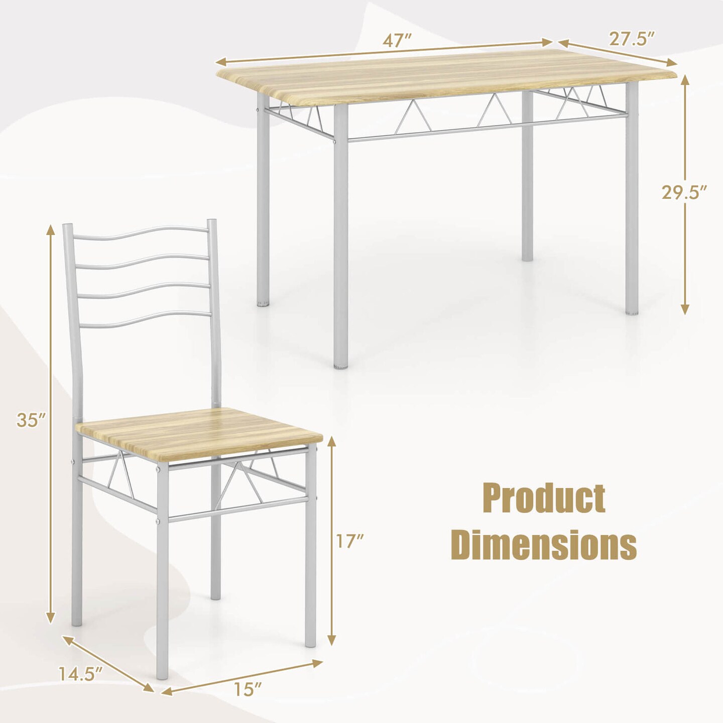 Costway 5 Piece Dining Table Set Wood Metal Kitchen Breakfast Furniture with 4 Chair Walnut/Natural