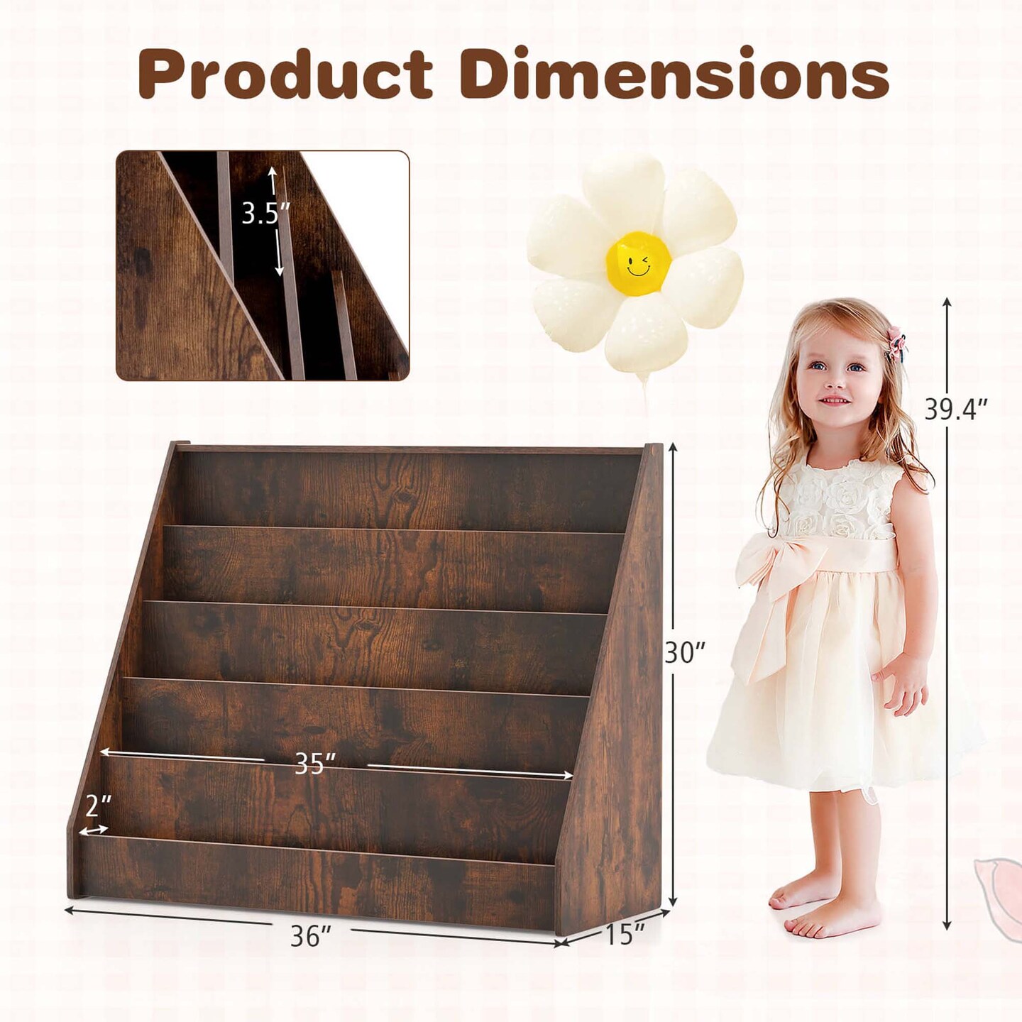 Costway 5 Tier Kids Bookshelf with Anti-Tipping Device Kids-friendly Height for Bedroom Natural/Brown/White