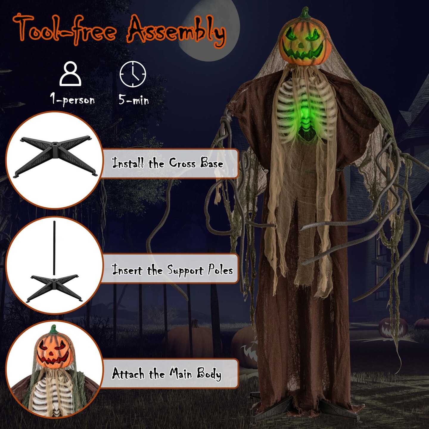 Costway 5.75ft Halloween Animatronics Decoration Talking Ghost Pumpkin with Glowing Ribs and Moving Head Sound & Touch Activated Standing Prop