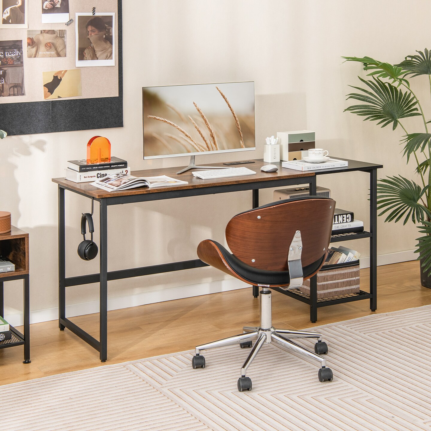 Costway 59'' Home Office Computer Desk Study Laptop Table Detachable Shelf Rustic