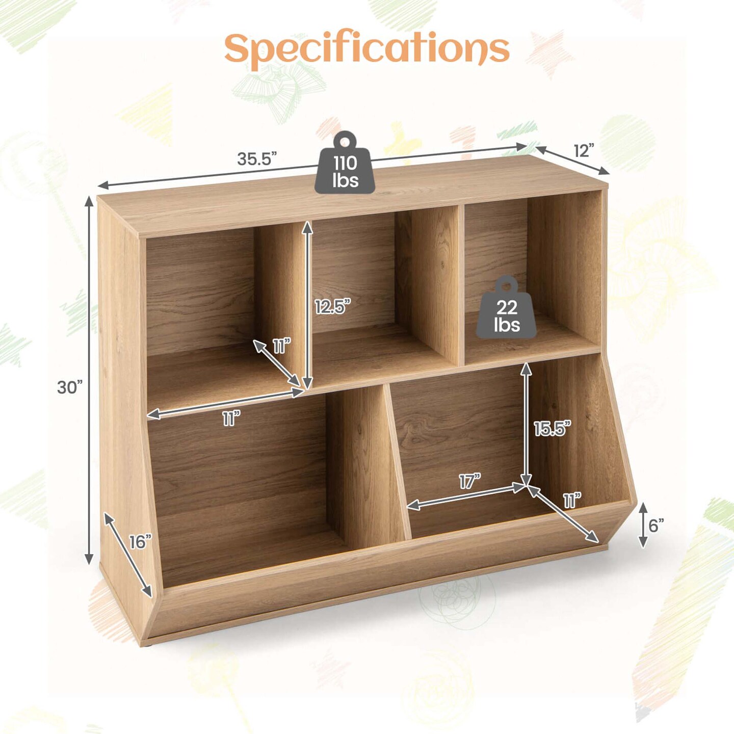 Costway 5-Cubby Kids Toy Storage Organizer Wooden Bookshelf Display Cabinet Natural/White