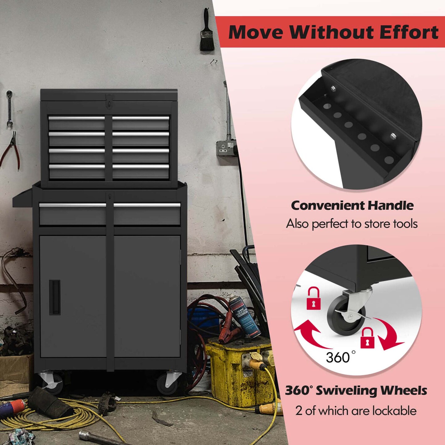 Costway 5-Drawer Rolling Tool Chest Cabinet Metal Tool Storage Box Lockable with Wheels Black/Red/Gray/Orange/Green/Yellow