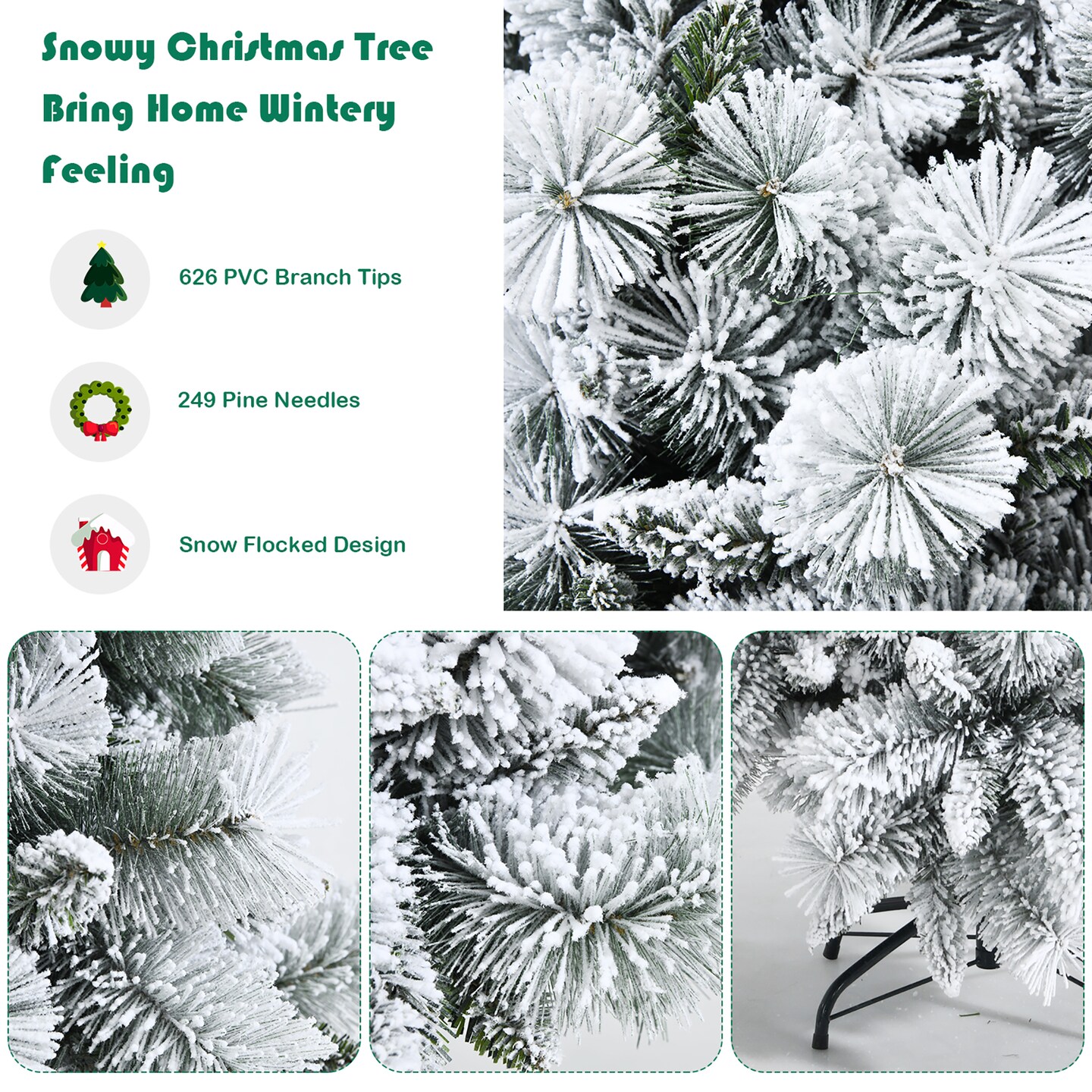 Costway 5ft/6ft/7ft Snow Flocked Hinged Artificial Slim Christmas Tree with Pine Needles