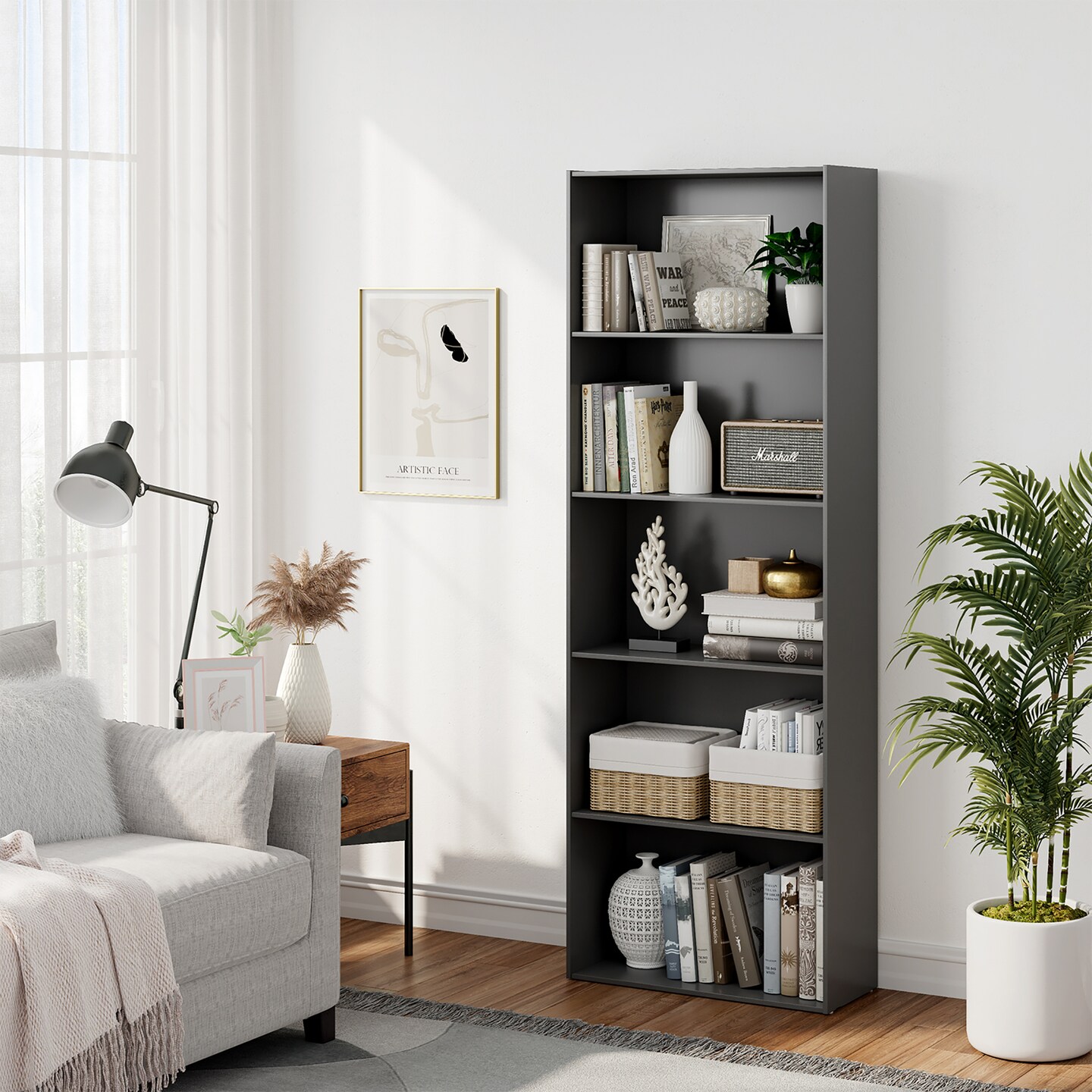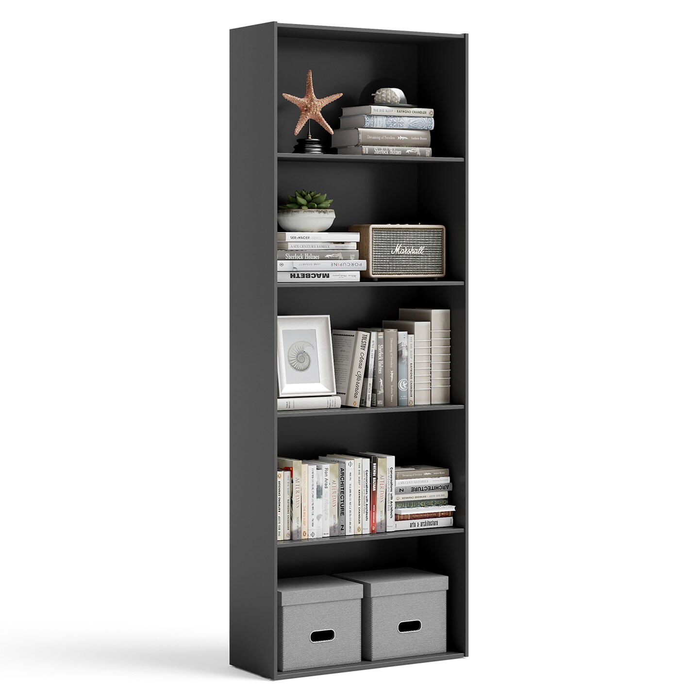 Costway 5-Shelf Storage Bookcase Modern Multi-Functional Display Cabinet Furniture Black