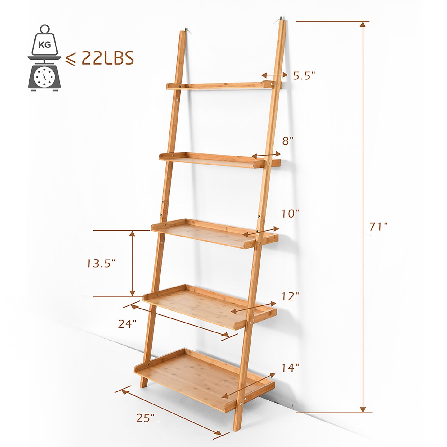 Costway 5-Tier Ladder Shelf Bamboo Bookshelf Wall-Leaning Storage Display Plant Stand