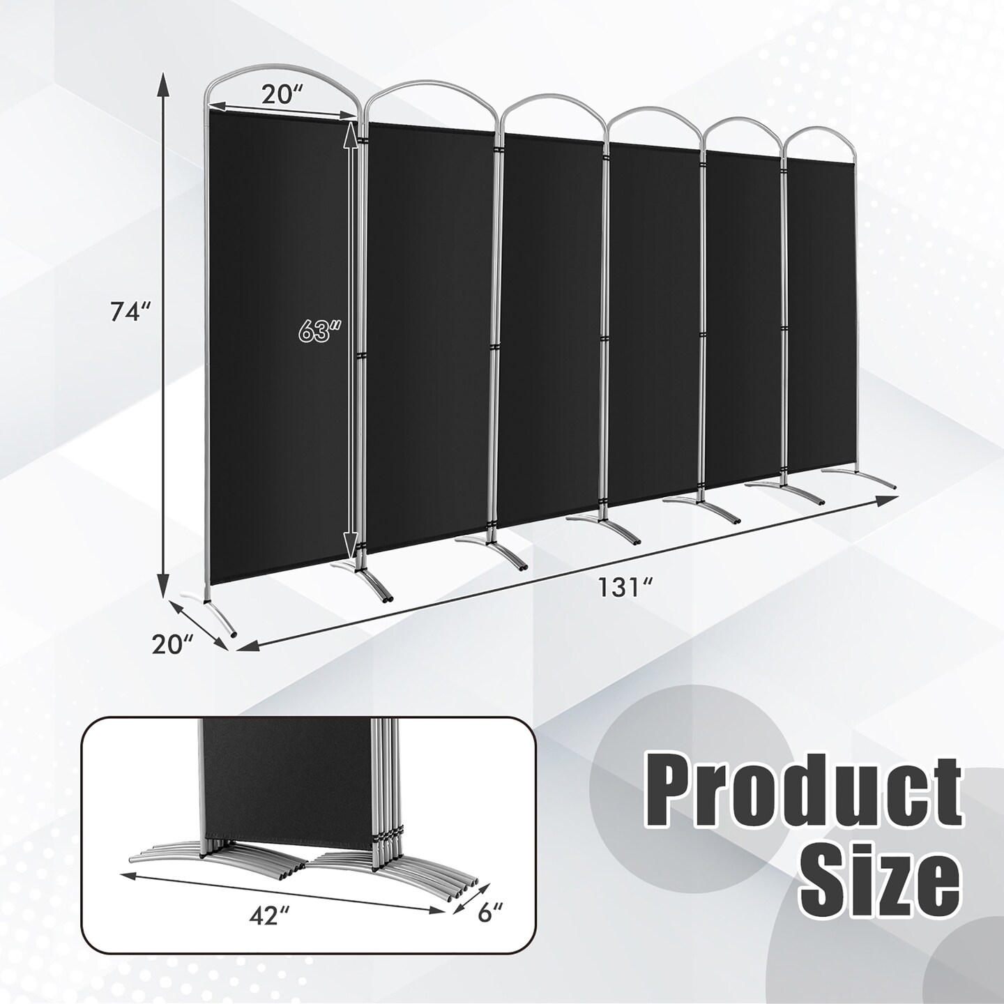 Costway 6 Panels Folding Privacy Screen 6 Ft Tall Fabric Privacy Screen for Home