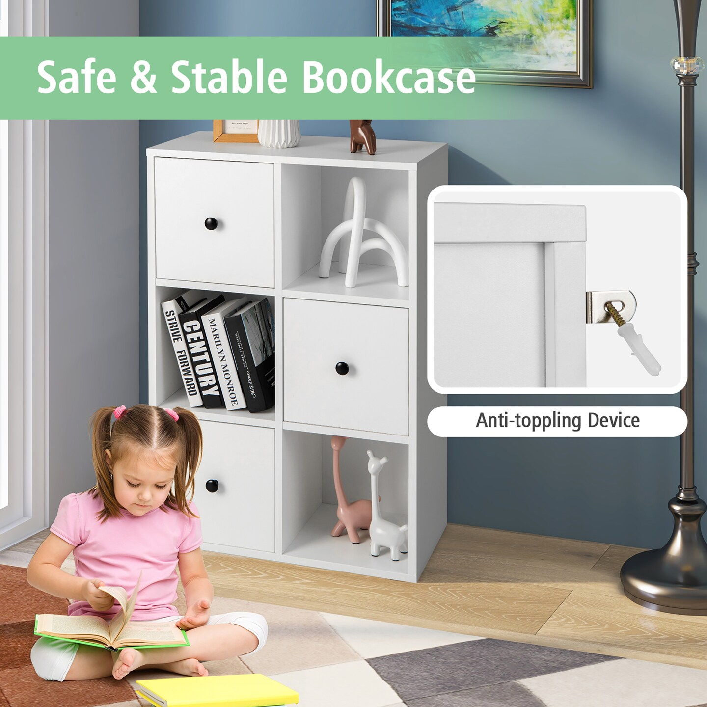 Costway 6-Cube Bookcase Storage Organizer with 3 Open Cubes 3 Drawers for Home Office White/Brown