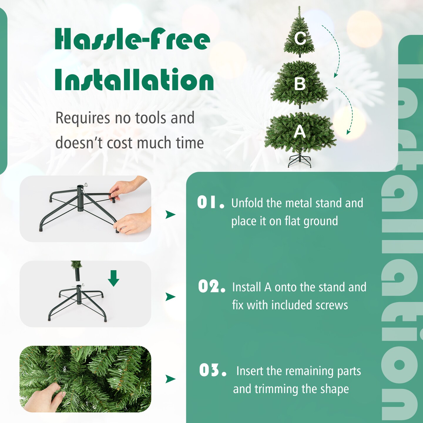 Costway 6FT/7.5FT/9FT PVC Christmas Tree Hinged Solid Metal Legs