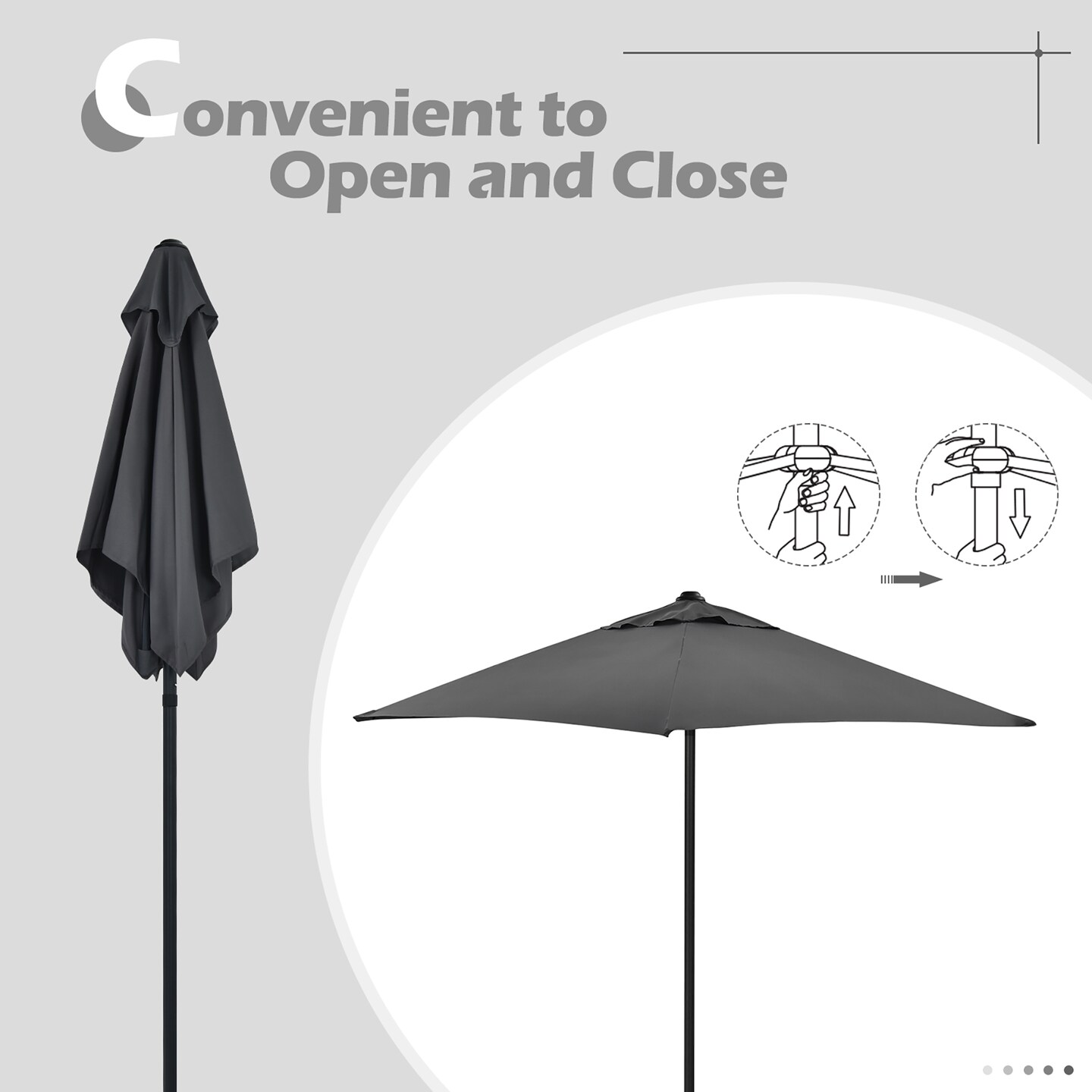 Costway 6PCS Patio Furniture Dining Set Folding Chairs Glass Table W/Umbrella Deck Grey