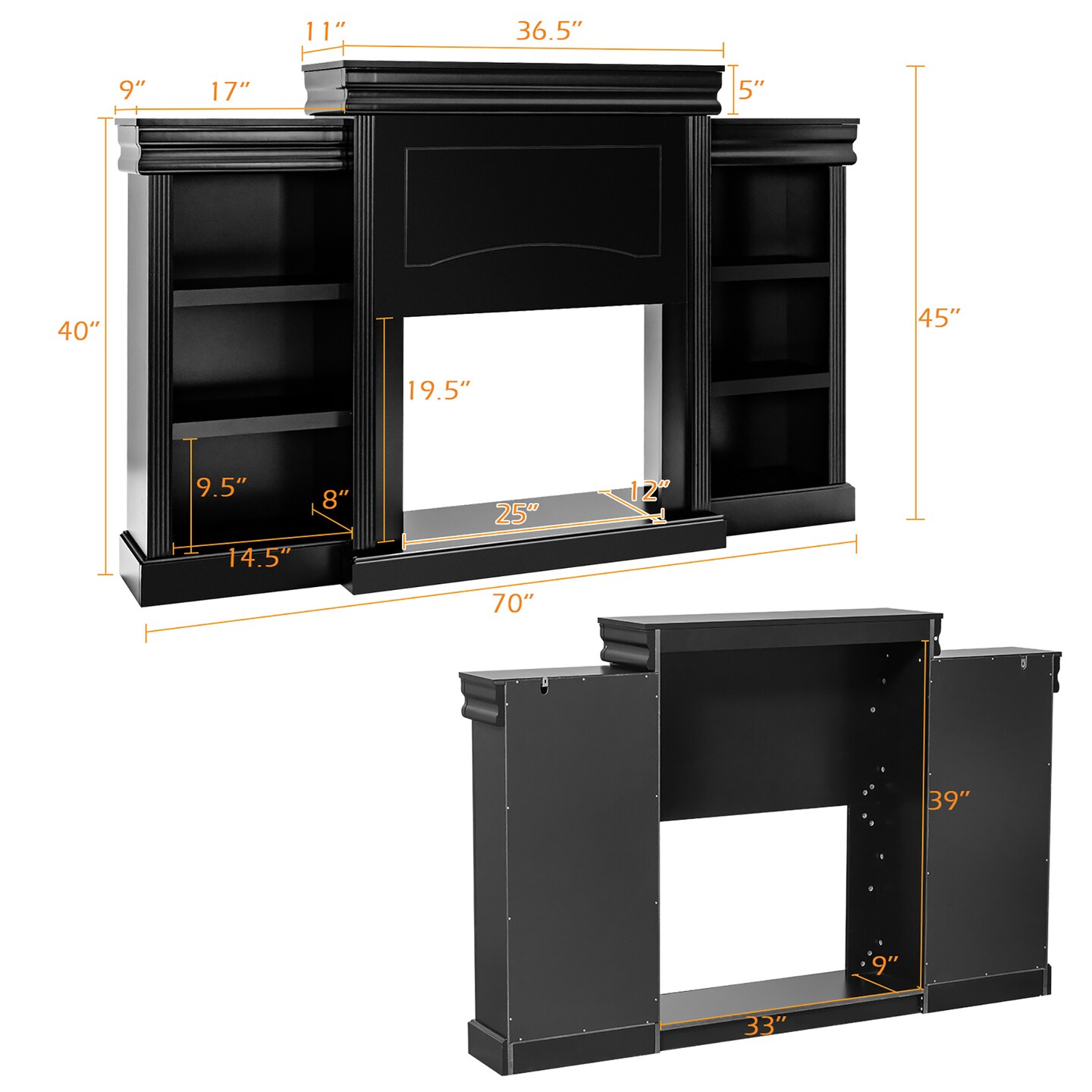 Costway 70'' Fireplace TV Stand Modern Media Entertainment Center Bookcase White\Black