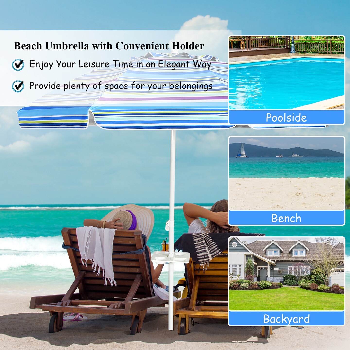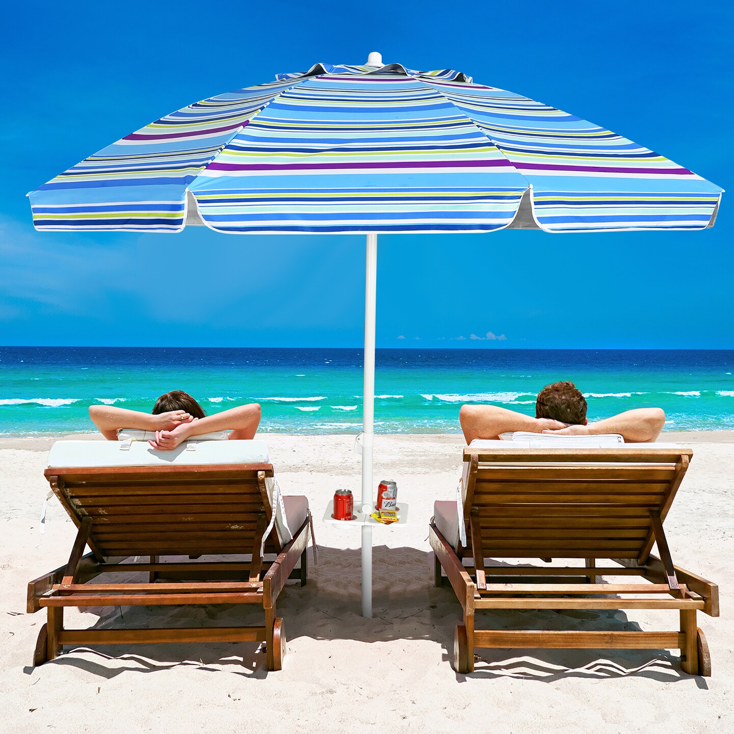 Costway 7.2 FT Portable Beach Umbrella Tilt Sand Anchor Cup Holder with Carry Bag Blue/Navy Blue/Rainbow/Green