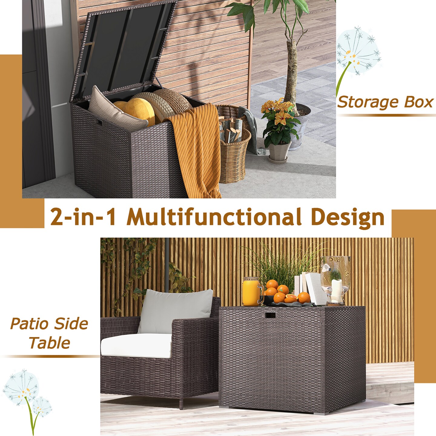 Costway 72 Gallon Patio Rattan Wicker Storage Deck Box Container with Liner Garden