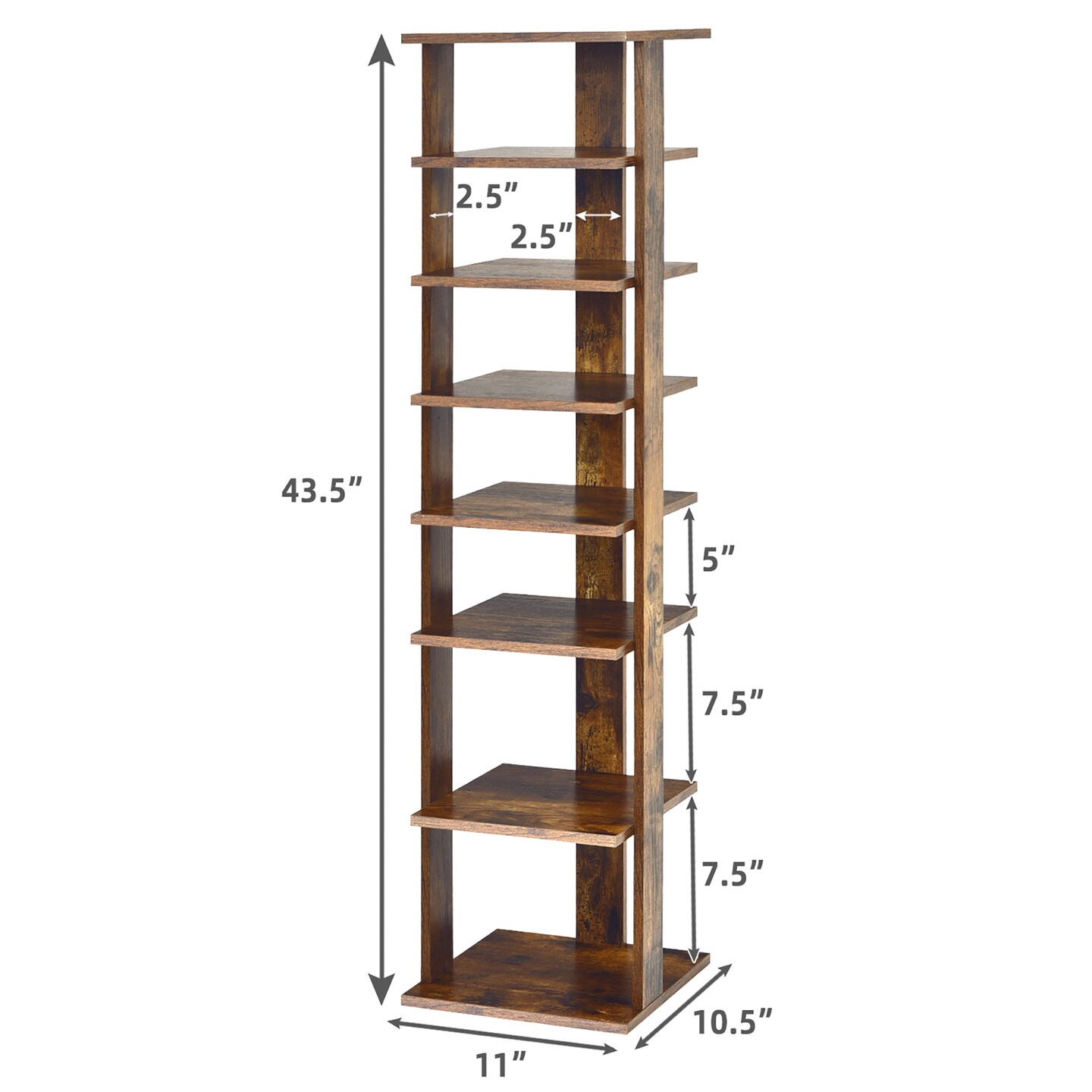 Costway 7-Tier Shoe Rack Free Standing Shelf Storage Tower Rustic Brown