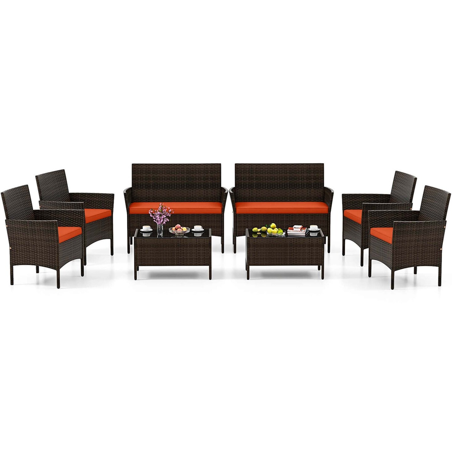 Costway 8 PCS Patio Furniture Set with Washable Cushions and Tempered Glass Coffee Table Black/Grey/Navy/Turquoise/Red/Blue/Orange