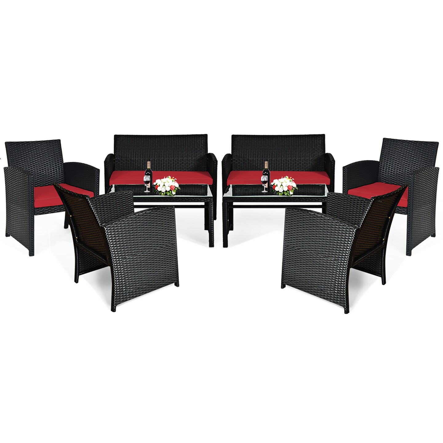 Costway 8PCS Patio Rattan Furniture Conversation Set Cushion Sofa Table Garden Turquoise\Navy\Black\Red
