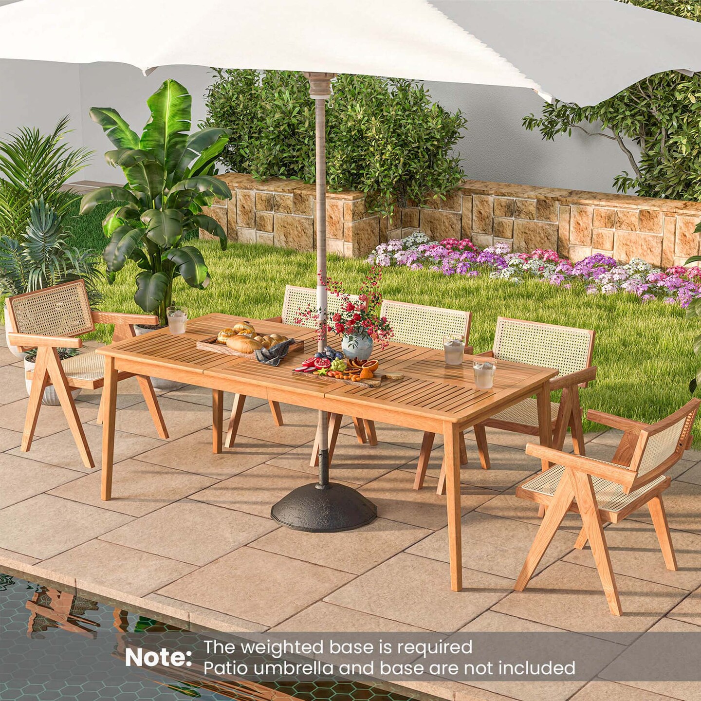 Costway 8-Person Outdoor Acacia Wood Dining Table with 1.96" Umbrella Hole Rectangular