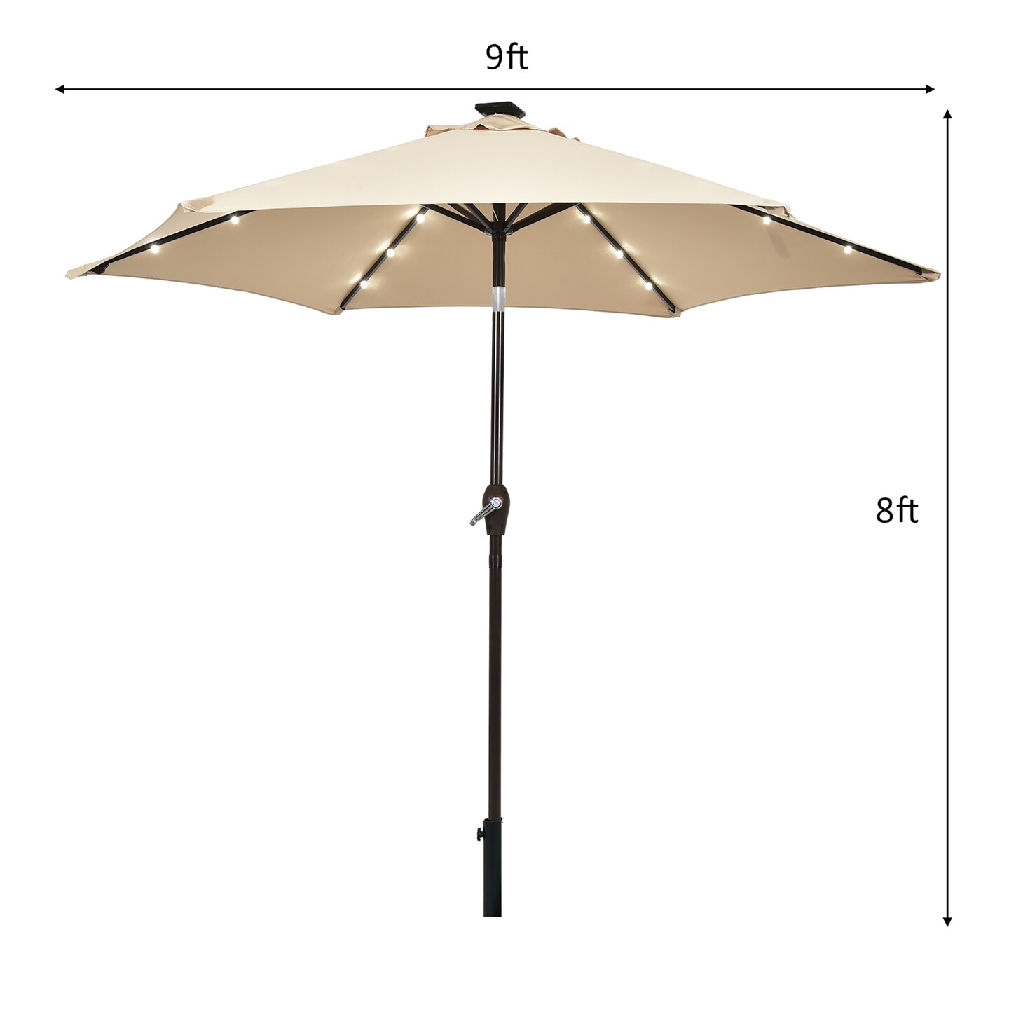 Costway 9' Solar LED Lighted Patio Market Umbrella Tilt Adjustment Crank Lift