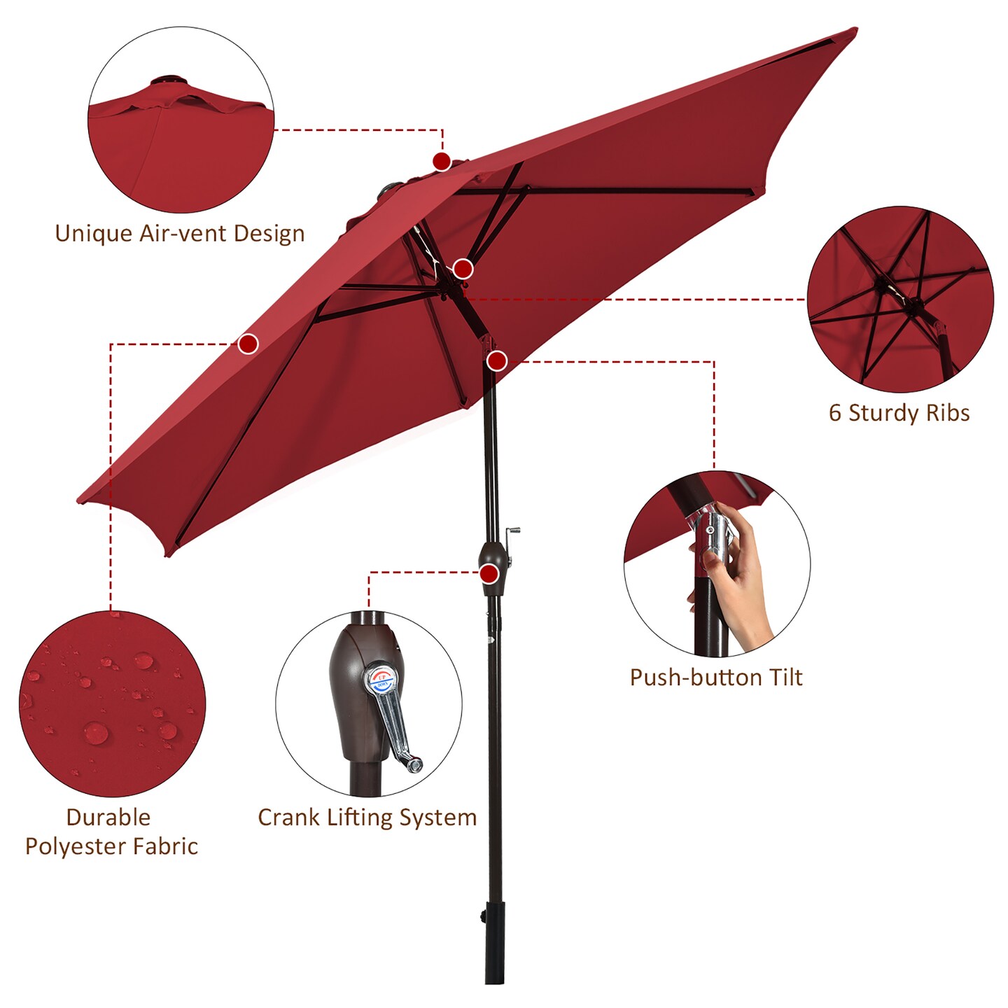 Costway 9Ft Outdoor Market Patio Table Umbrella Push Button Tilt Crank Lift Burgundy/Beige/Tan/Blue
