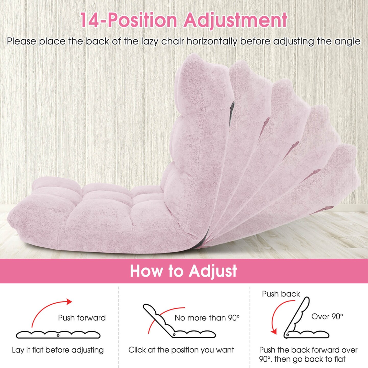 Costway Adjustable 14-Position Floor Chair Folding Lazy Gaming Sofa Chair Cushioned New Blue/Green/Light Pink/Purple/Black/Coffee/Tan/Pink/Gray
