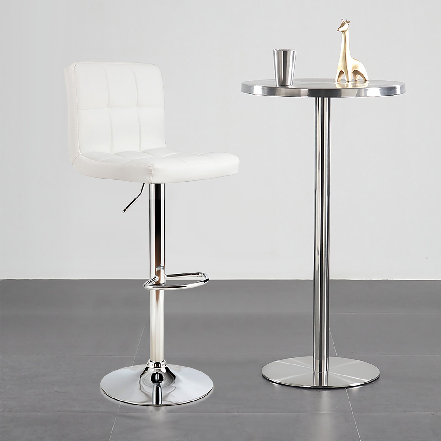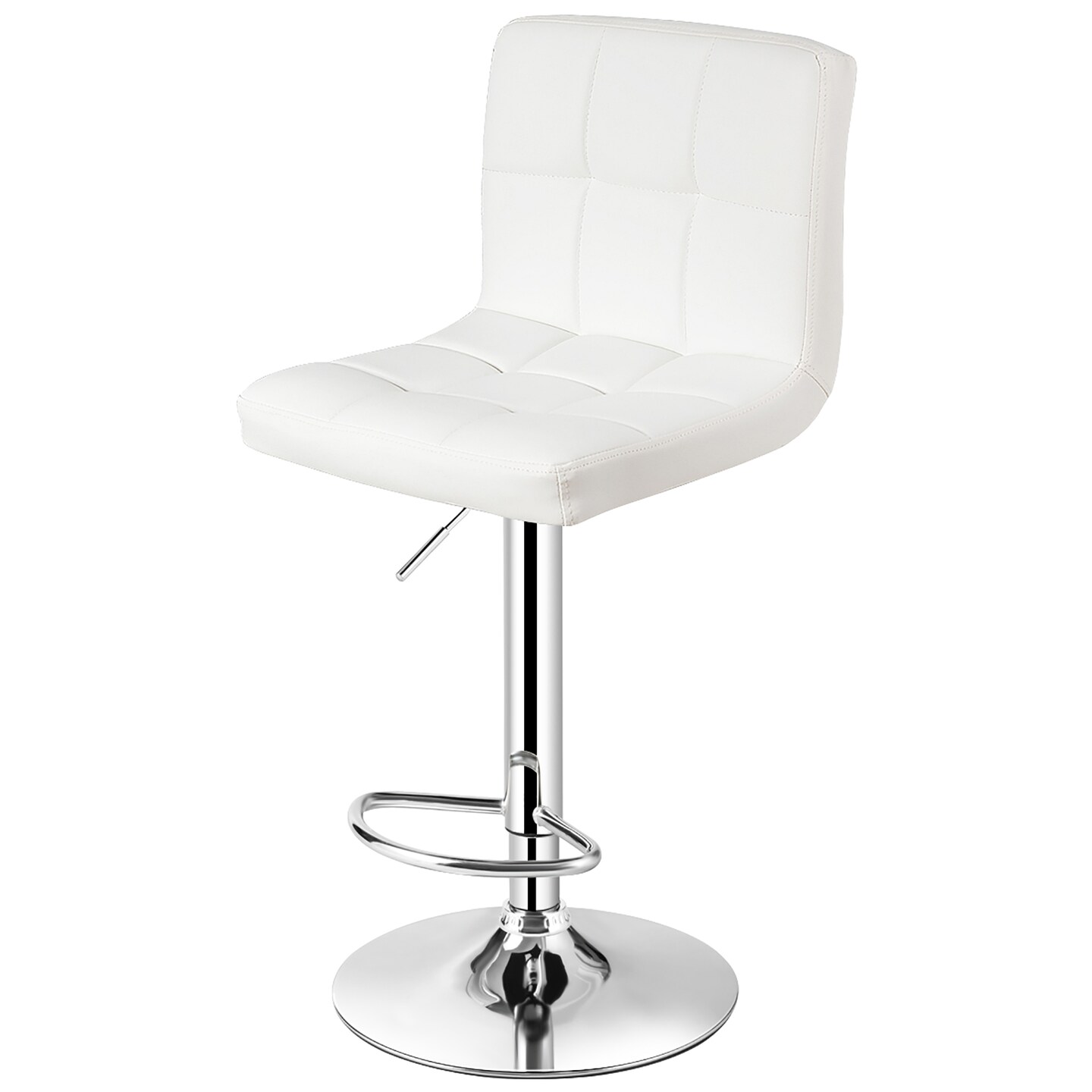 Costway Adjustable Armless Bar Stool Full Back Swivel Kitchen Counter Bar Chair PU Leather White