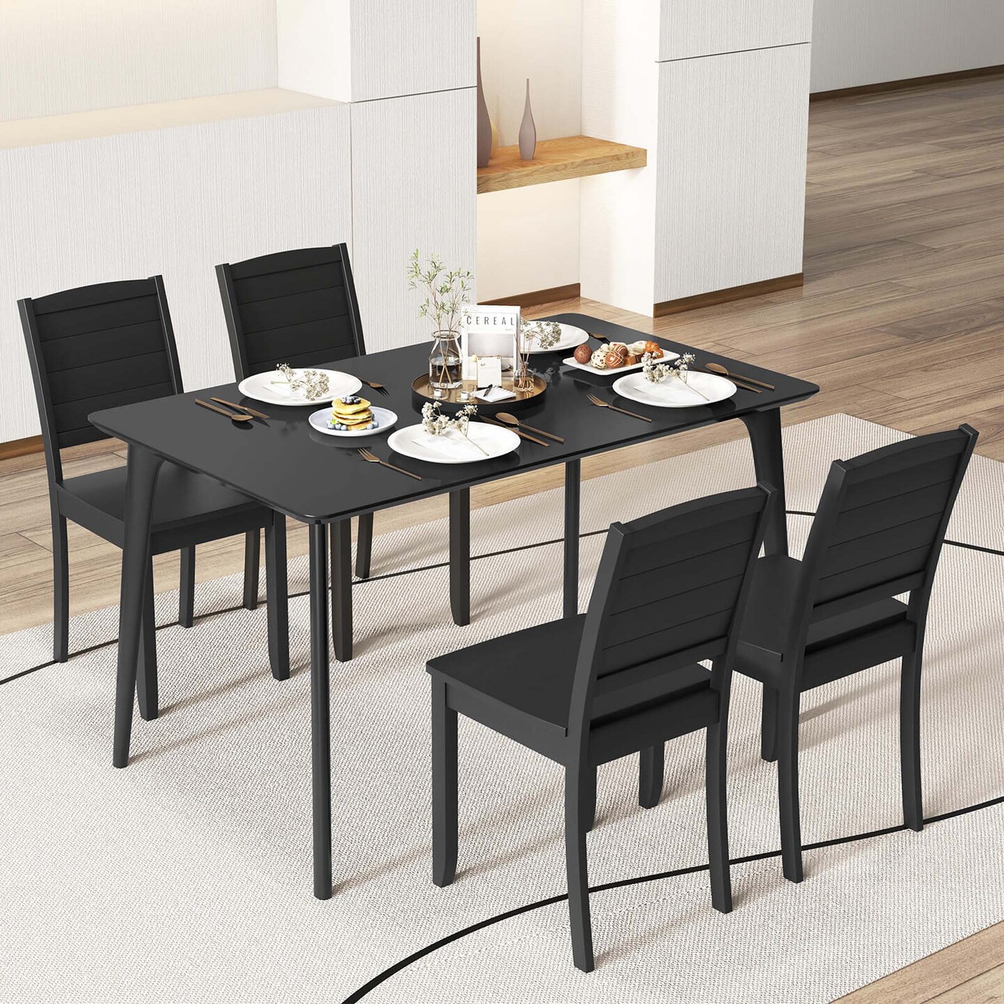 Costway Armless Wood Dining Chair Set of 2 with Rubber Wood Legs Curved Backrest Kitchen White/Black