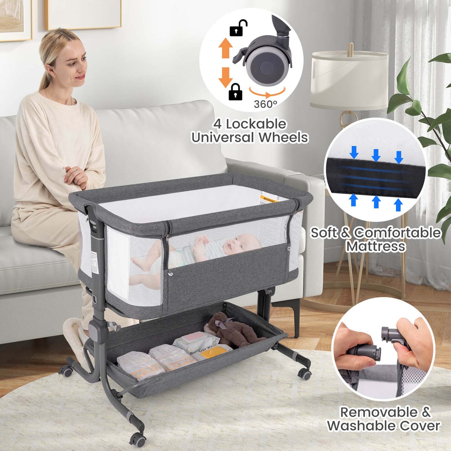 Costway Baby Bassinet Bedside Sleeper with 6-Level Adjustable Height Beige/Pink/Gray