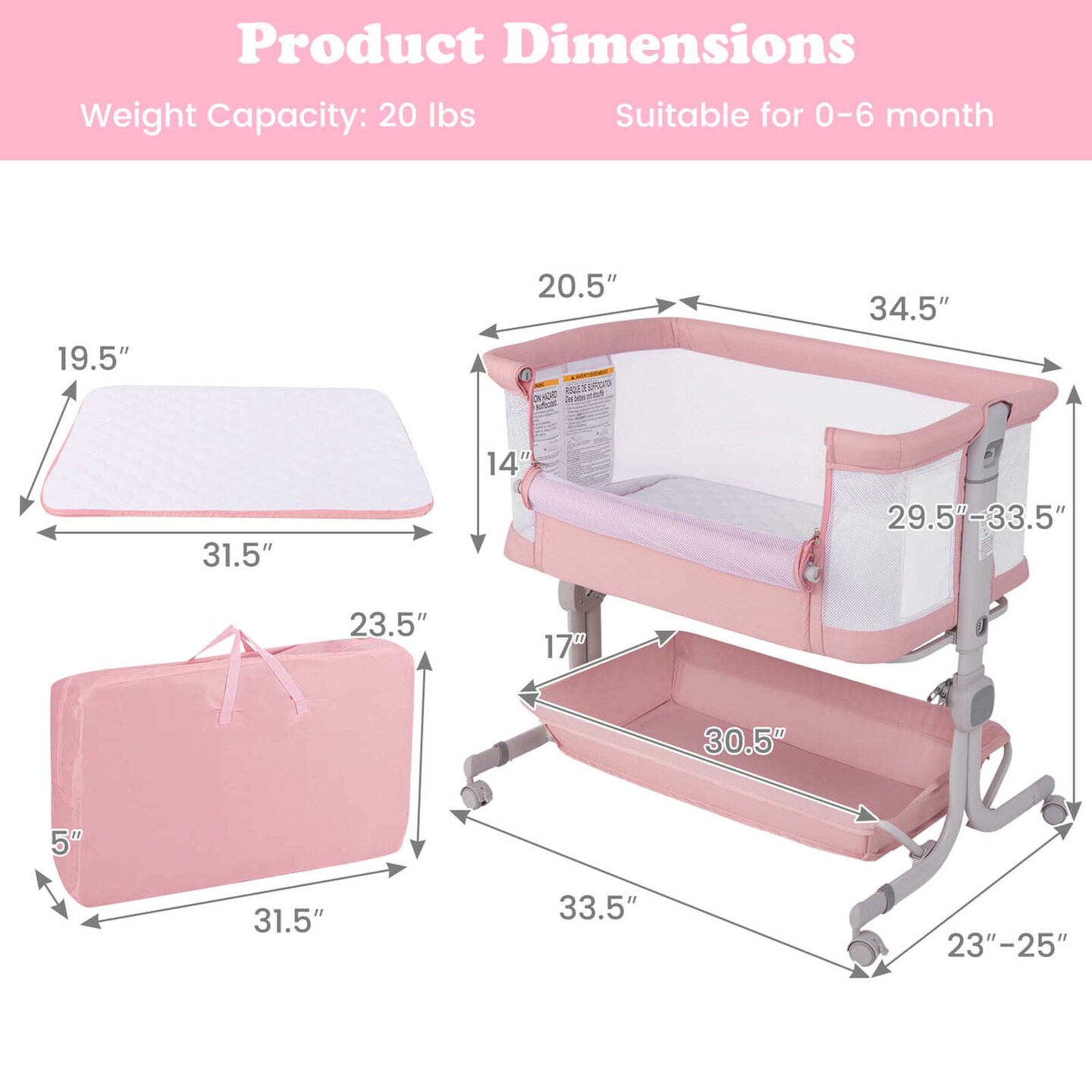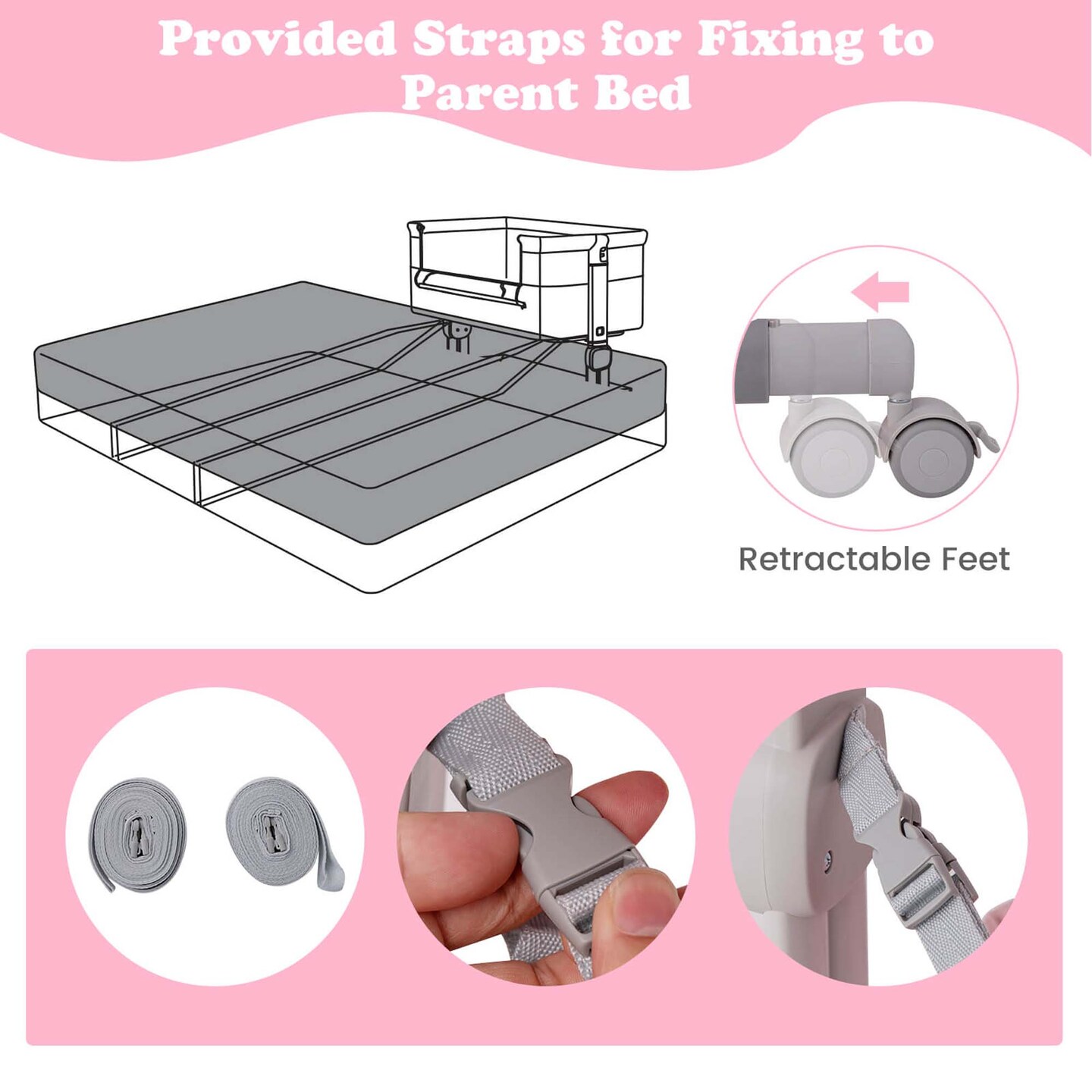 Costway Baby Bassinet Bedside Sleeper with 6-Level Adjustable Height Beige/Pink/Gray