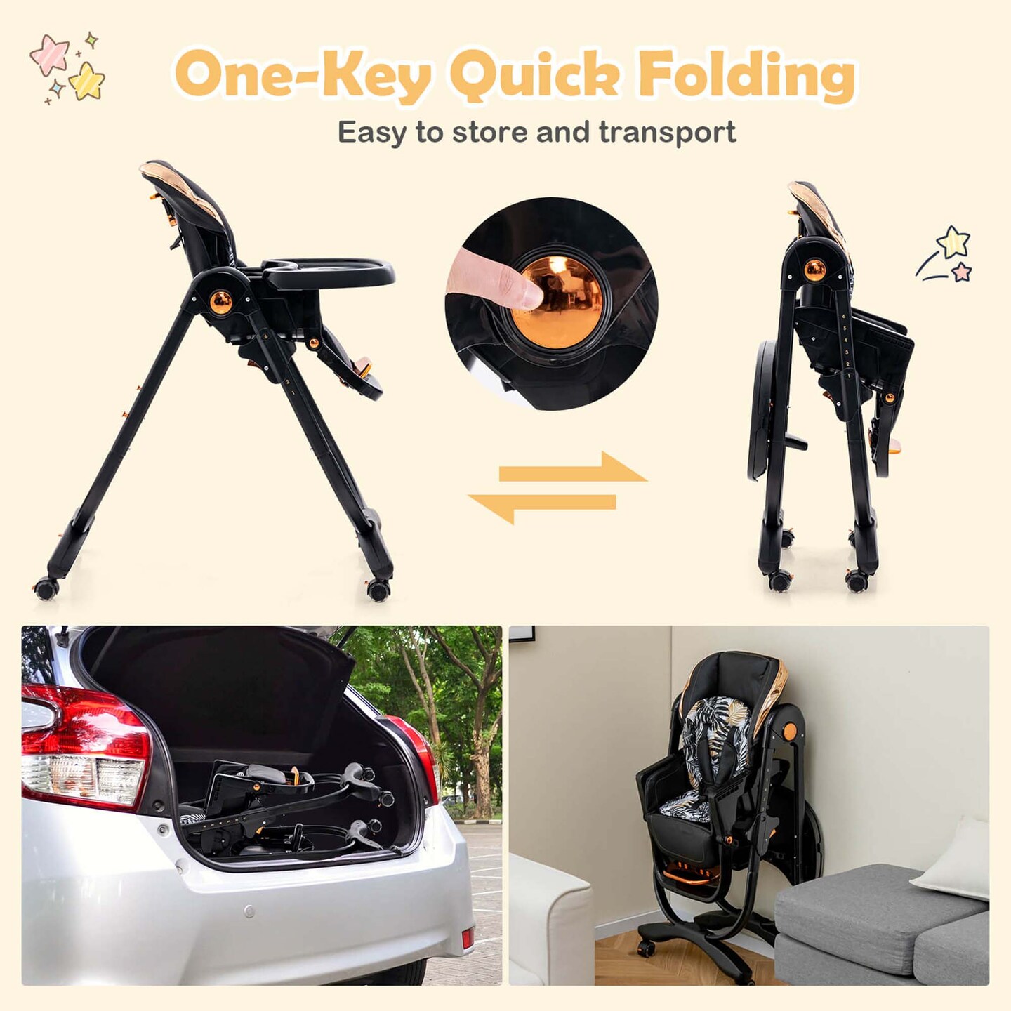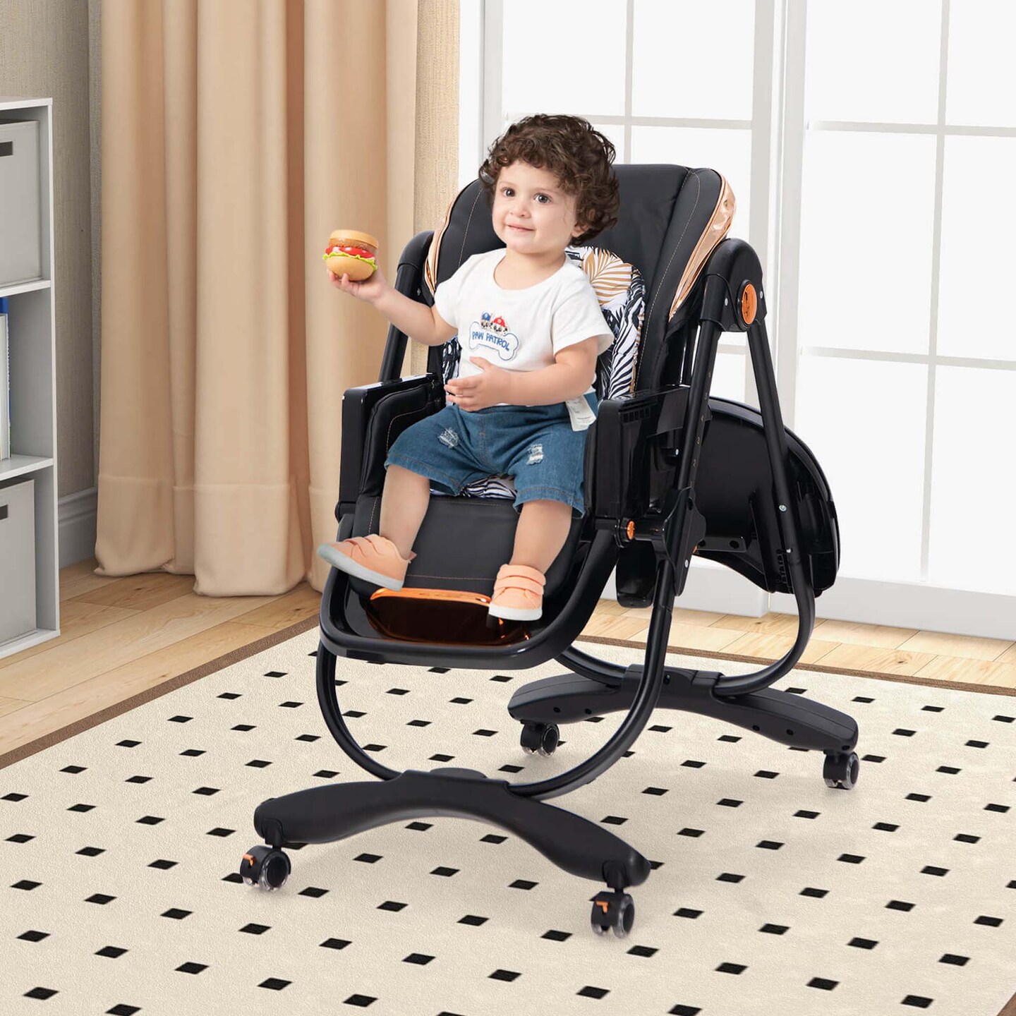 Costway Baby High Chair with Wheel Folding Baby Dining Chair Adjustable Height & Recline Grey/Black