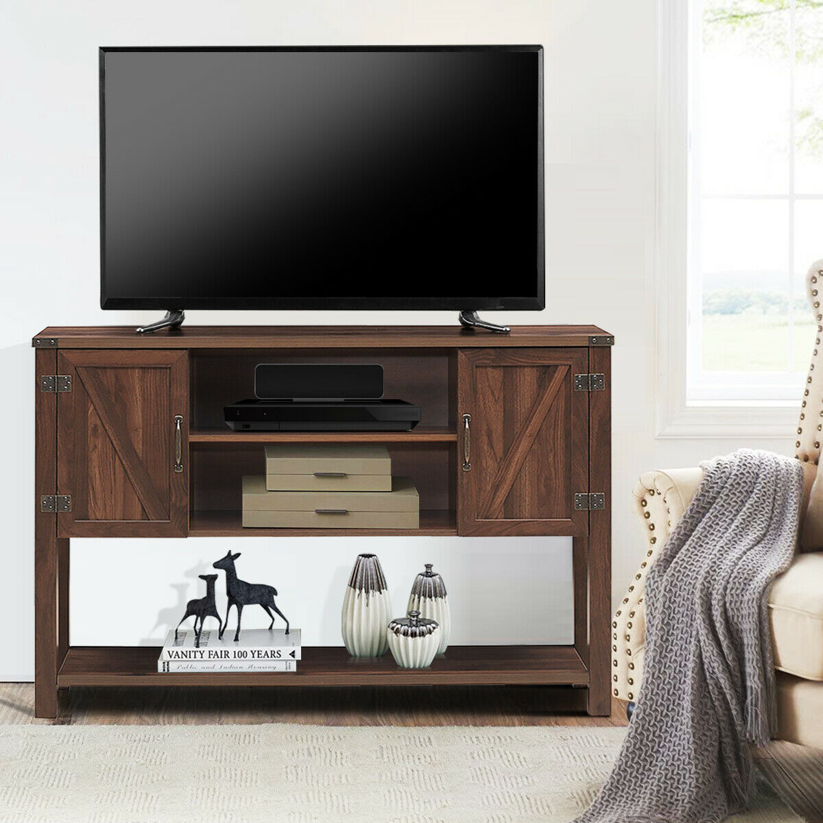 Costway Barn Door TV Stand Console Sideboard Buffet for TVs Up to 60'' w/Storage Cabinets