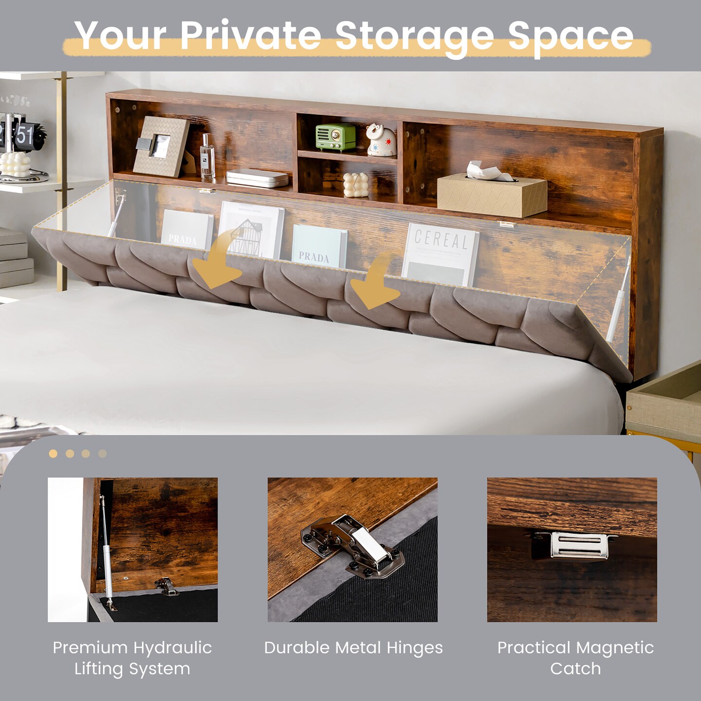 Costway Bed Frame Upholstered Platform Mattress Foundation with Storage Headboard
