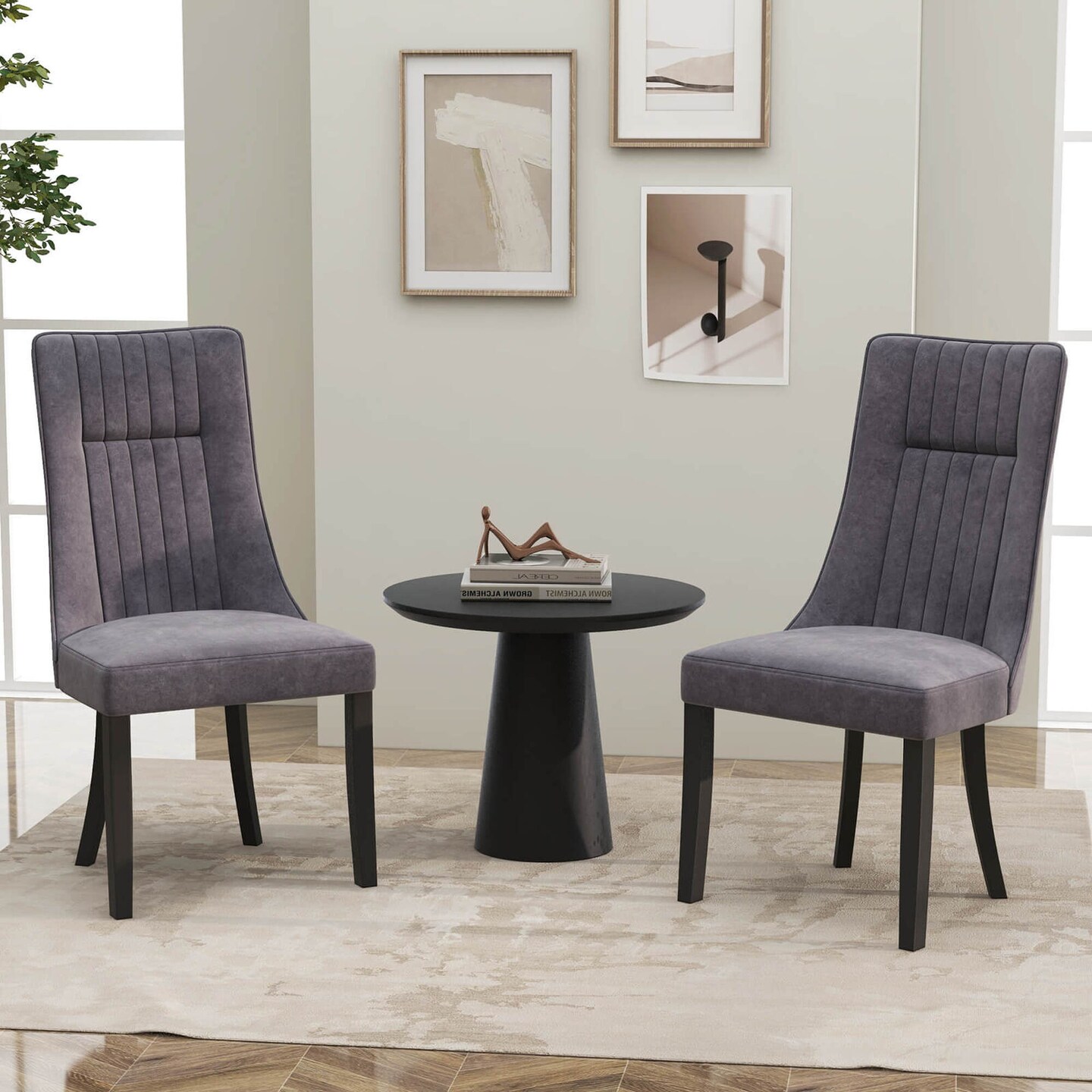 Costway Channel Tufted Dining Chairs Set of 2/4 with High Backrest Rubber Wood Legs Modern