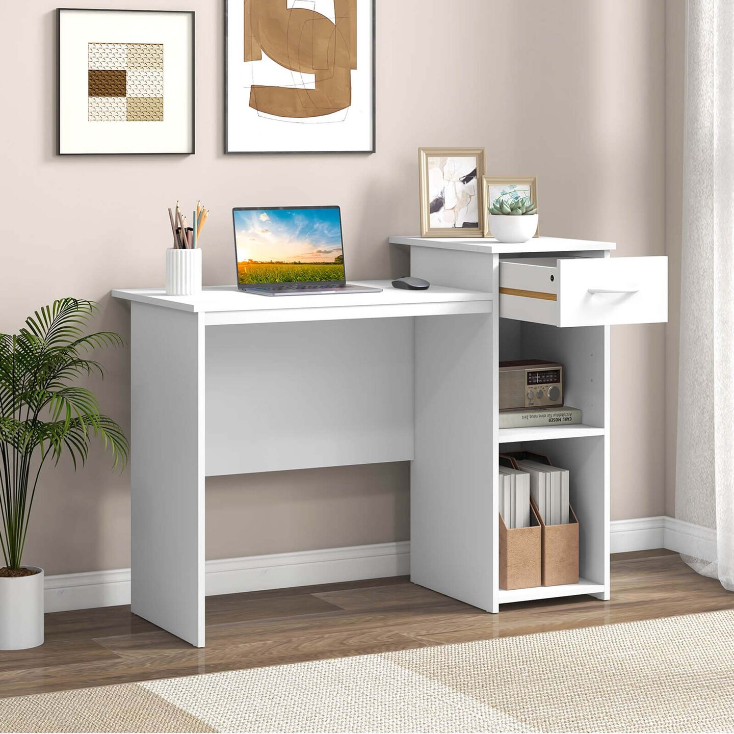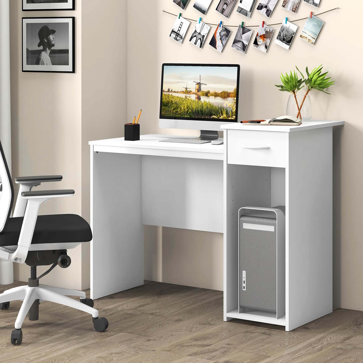 Costway Computer Desk with Drawer Modern Laptop PC Desk with Adjustable Shelf & Cable Hole