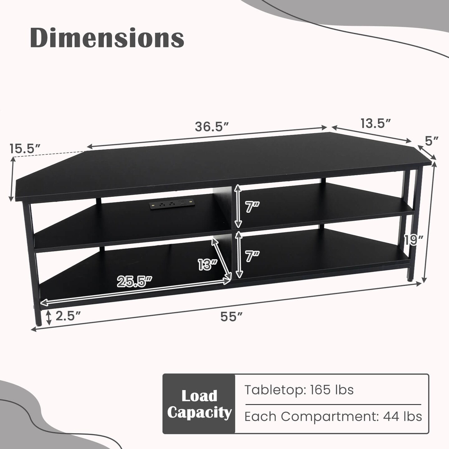 Costway Corner TV Stand for TVs up to 65" TV Console Table with AC Outlets&USB A Ports Rustic Brown/Black/White