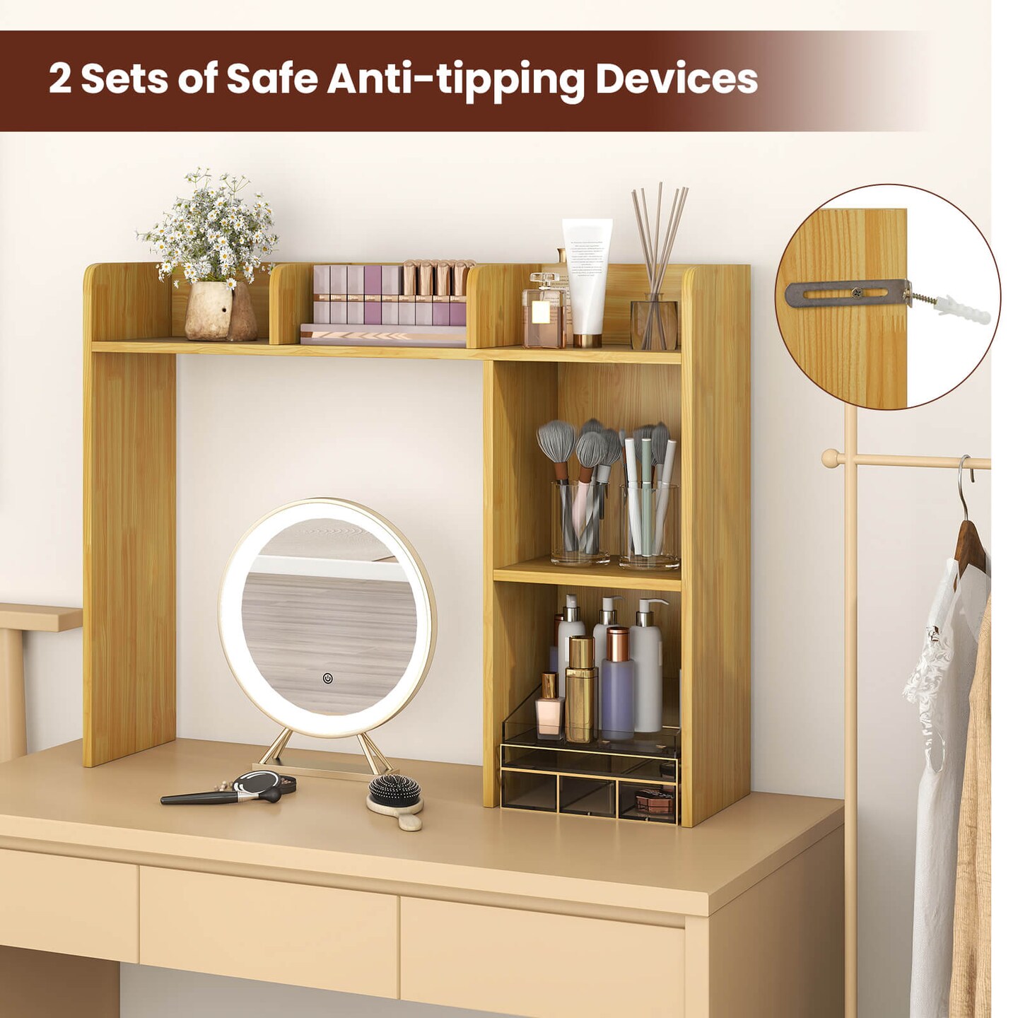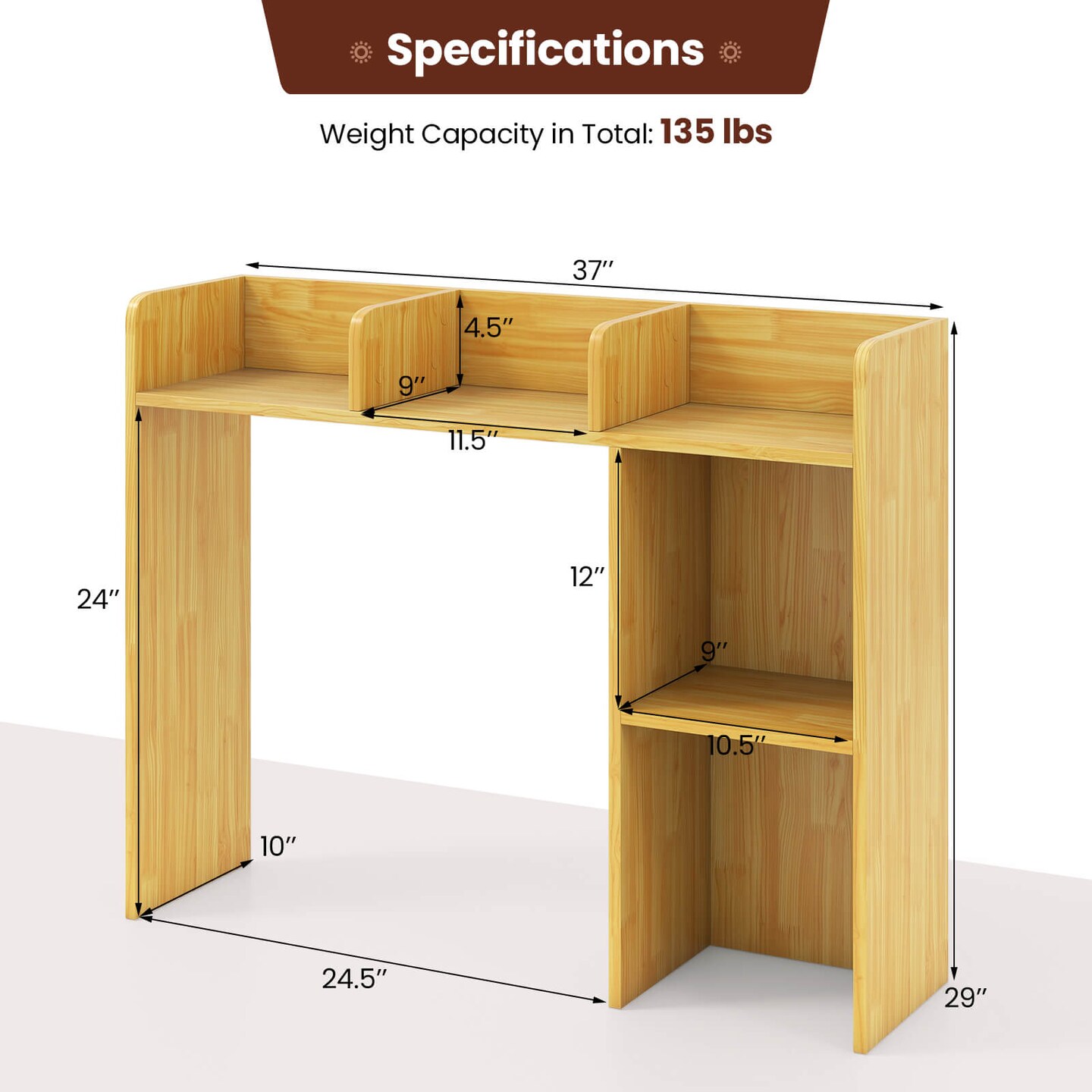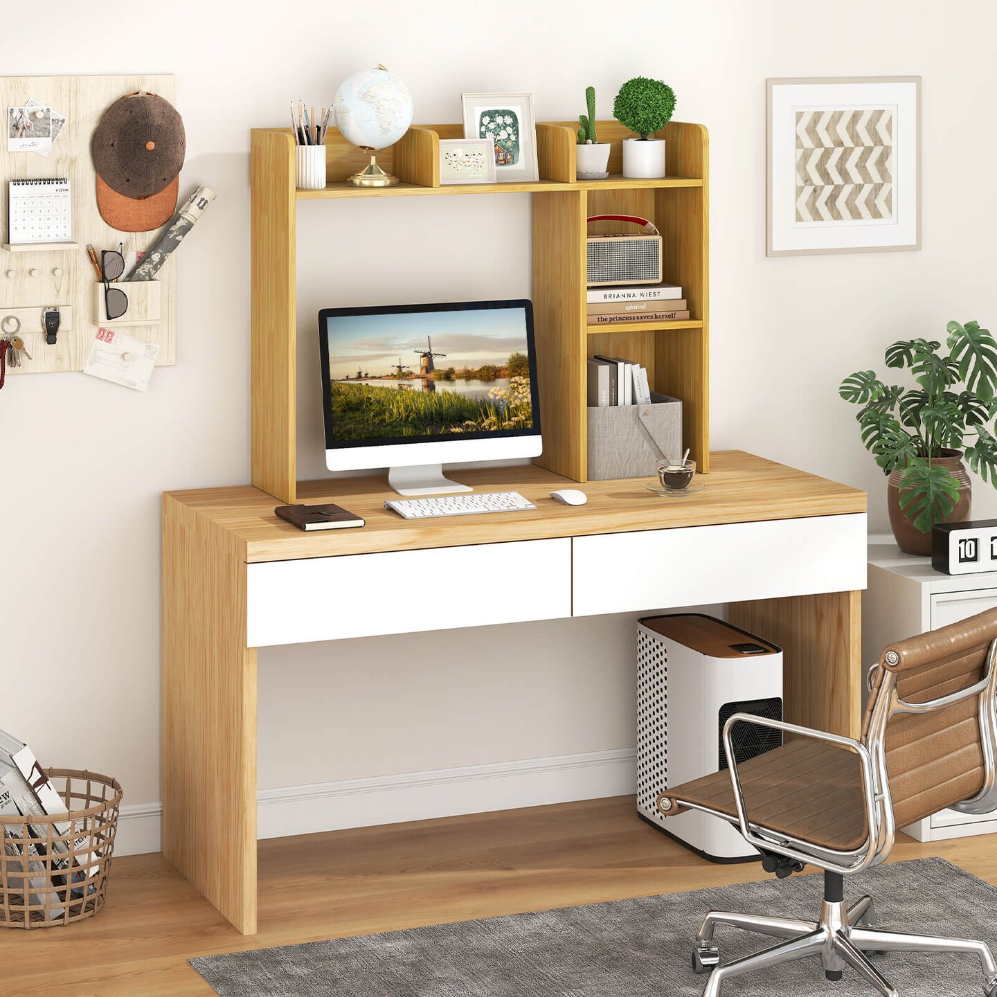 Costway Desk Bookshelf Desktop Storage Organizer Display Shelf Rack Dorm Office Natural/White/Brown