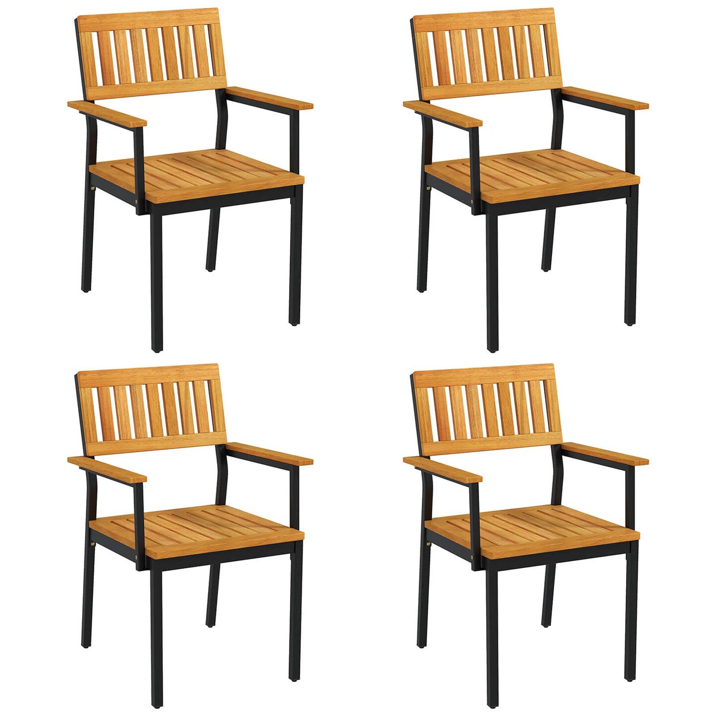 Costway Dining Chair Set of 2/4 with Acacia Wood Backrest Slanted Seat Comfortable Armrests