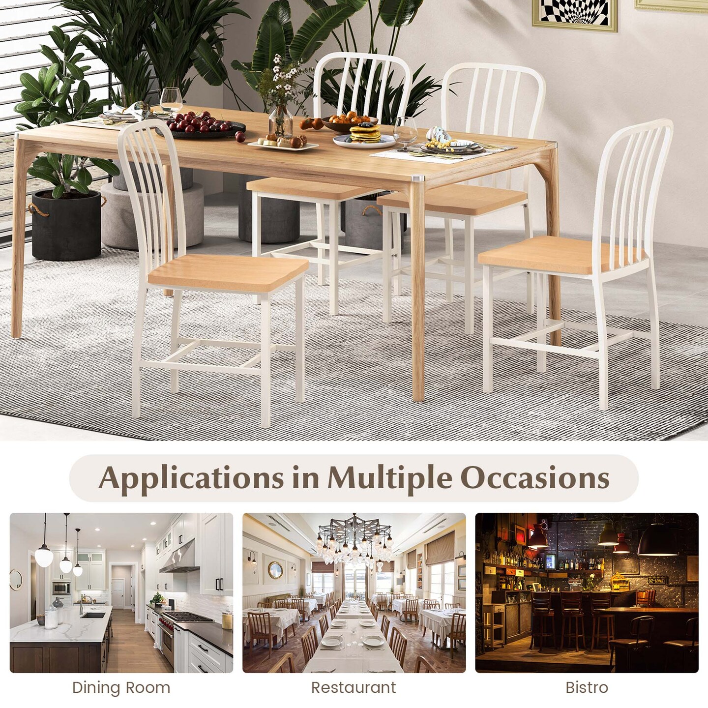 Costway Dining Chairs Set of 2 High Back Navy Chairs Metal Frame Footrests Kitchen Black/White