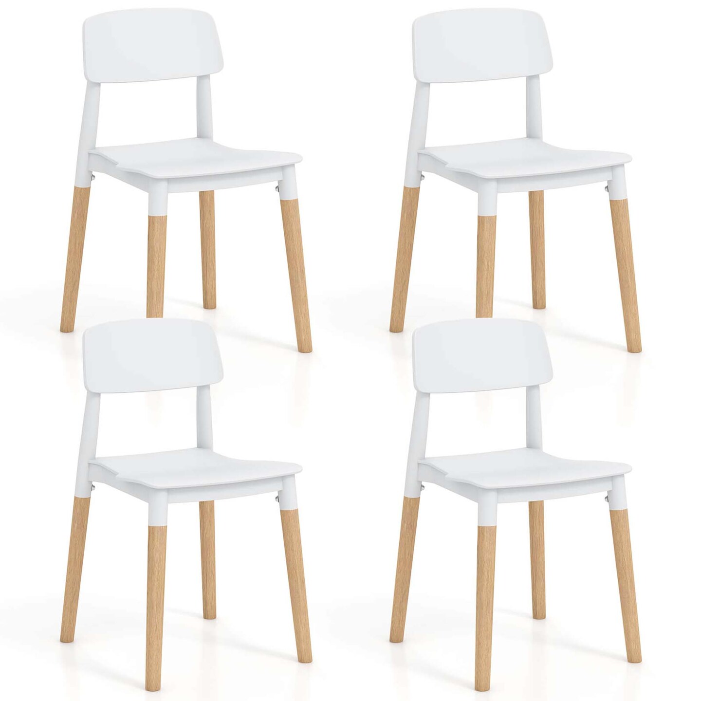 Costway Dining Side Chairs Set of 4 with Ergonomic Backrest Wide Seat & Sturdy Wooden Legs Black/White