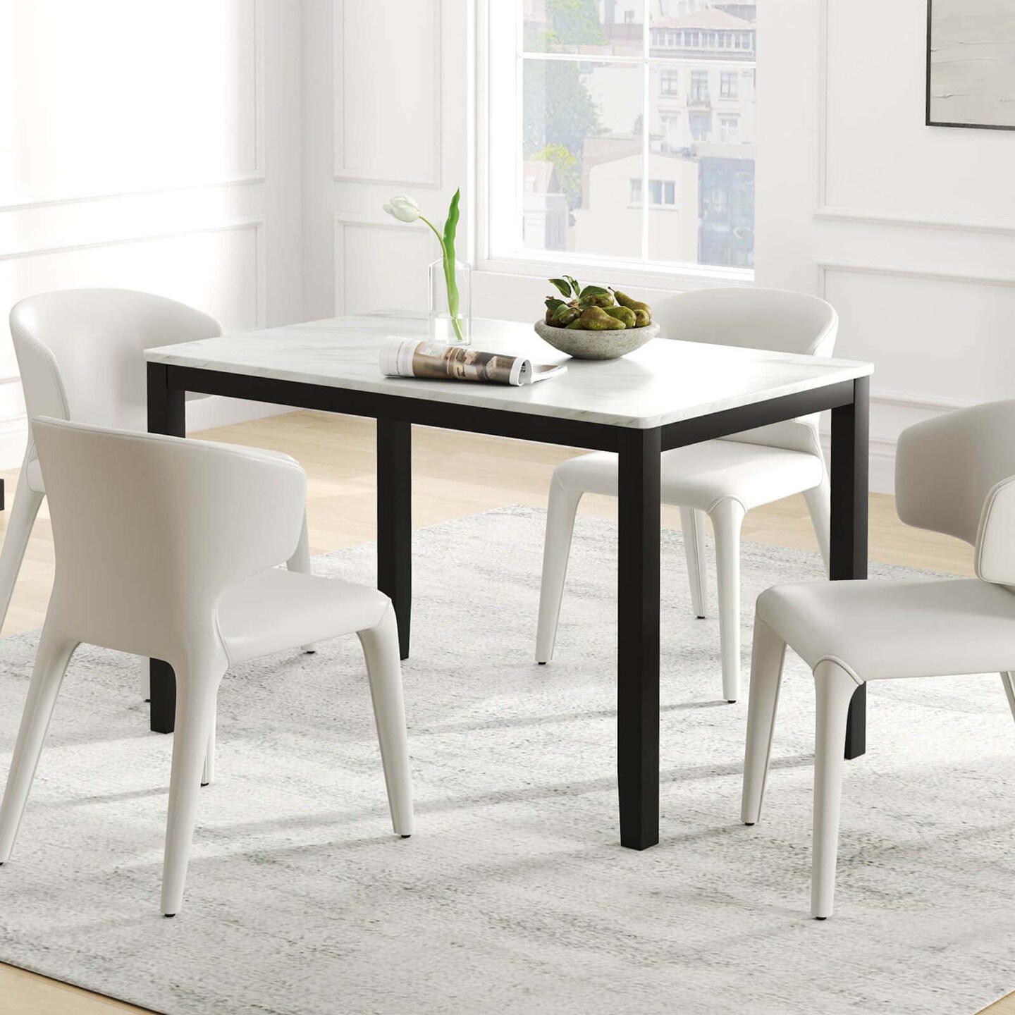 Costway Dining Table 45" Rectangular Mid Century Kitchen Table with Faux Marble Tabletop