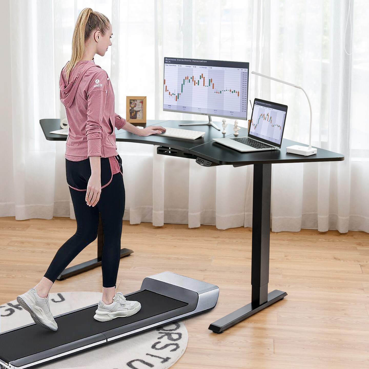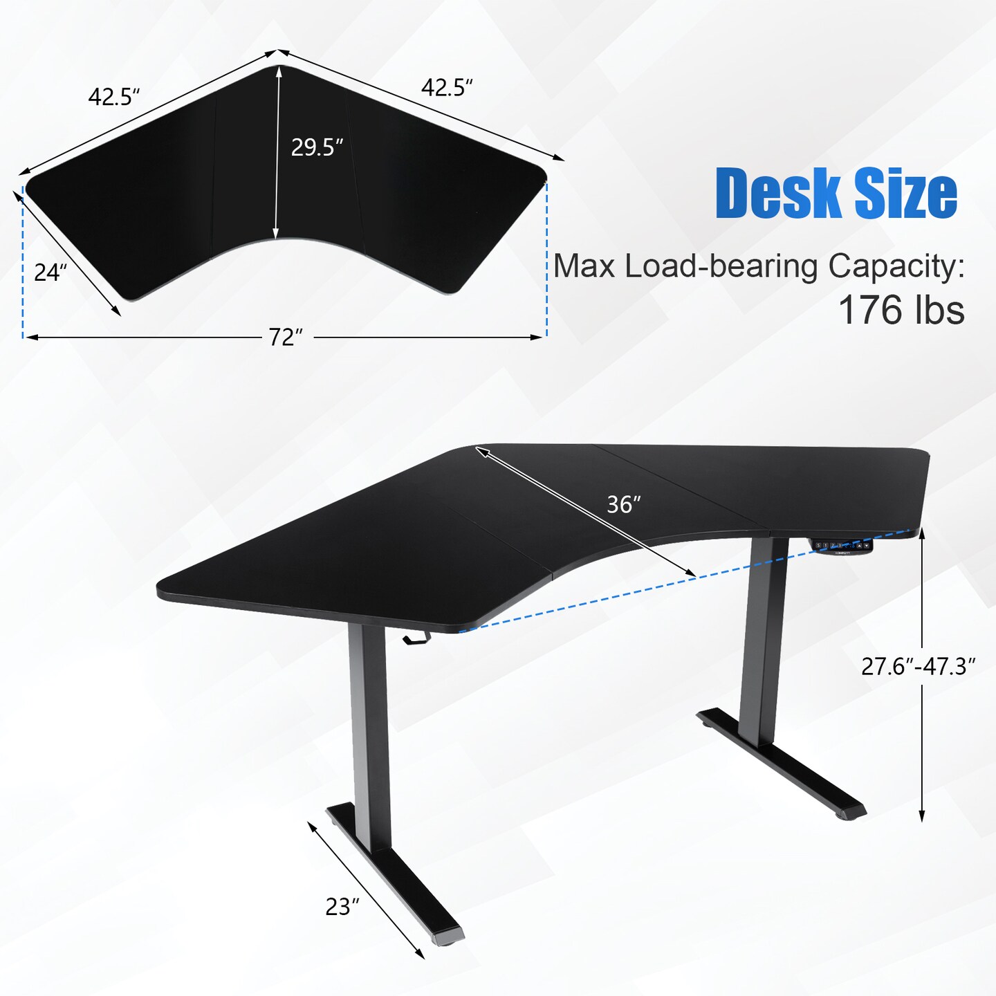 Costway Dual-motor L Shaped Standing Desk Ergonomic Sit Stand Computer Workstation Touch Control Panel Electric Height-adjustable Desk Home Office
