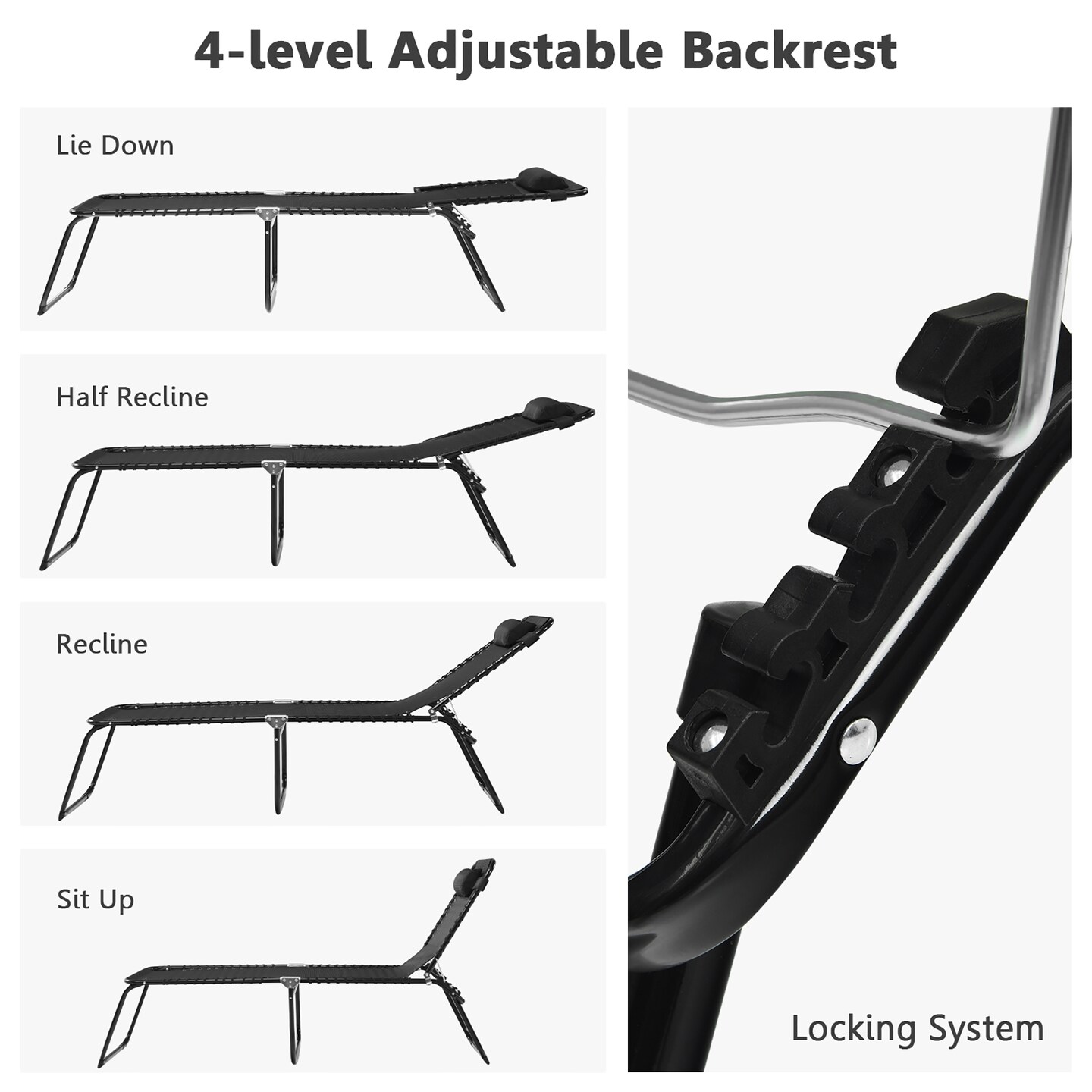 Costway Folding Beach Lounge Chair Heightening Design Patio Lounger w/ Pillow Black\Grey