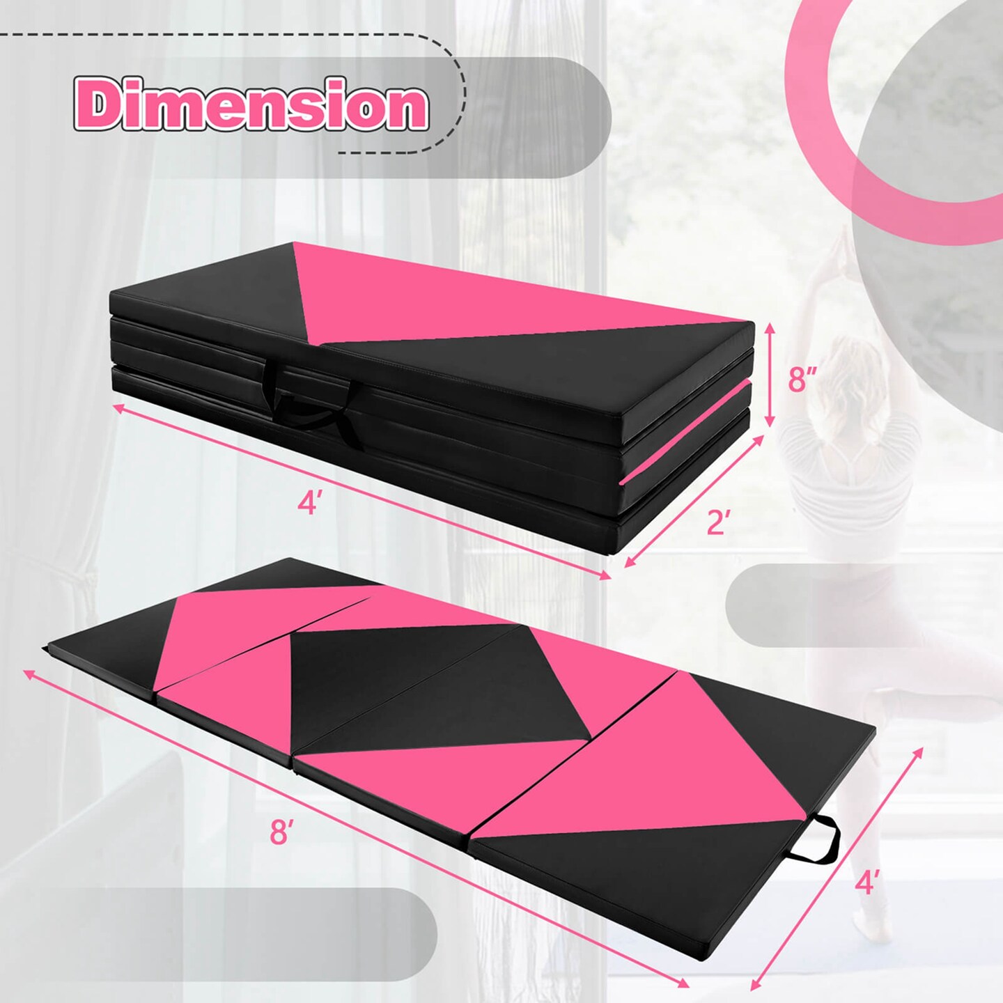 Costway Folding Gymnastics Mat 8' x 4' x 2'' PU Leather Tumbling Exercise Mat Yoga Gym Light Pink+Black/Blue+Black/Pink+Purple/Pink+Black/Pink+Blue/Pink
