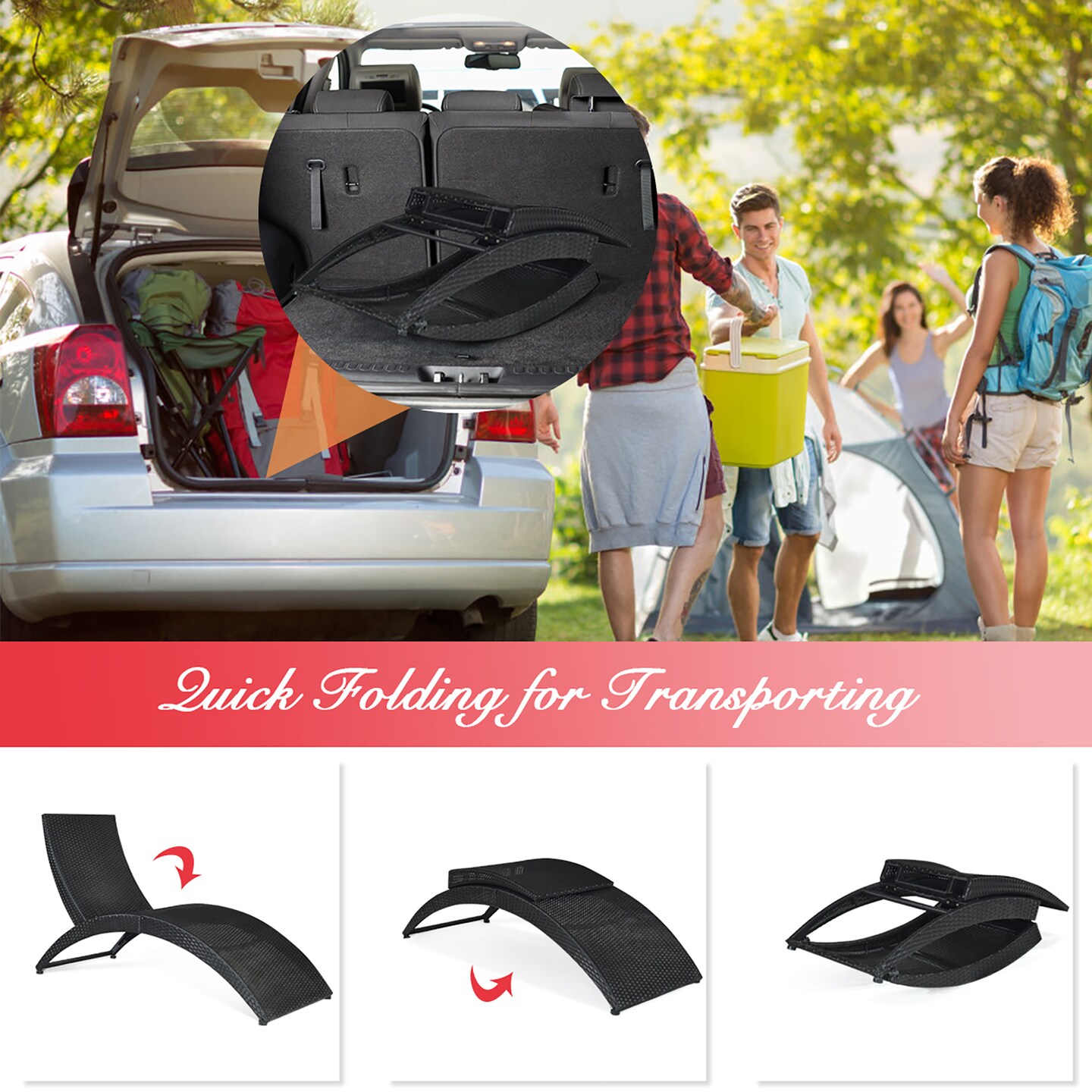 Costway Folding Patio Rattan Lounge Chair Chaise Cushioned Portable Garden
