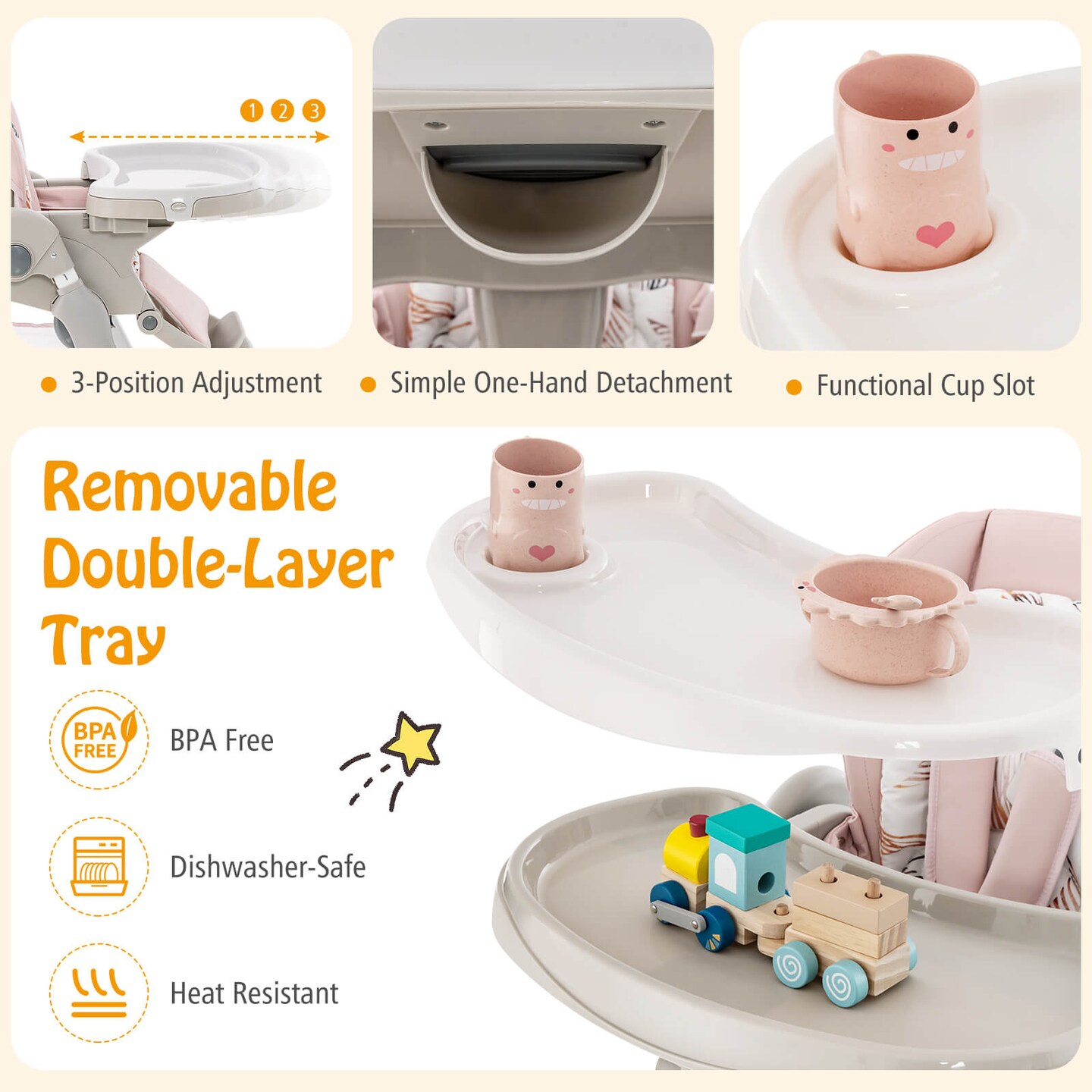 Costway High Chair for Babies & Toddlers with Rolling Wheels Adjustable Height Footrest White/Pink/Navy/Black