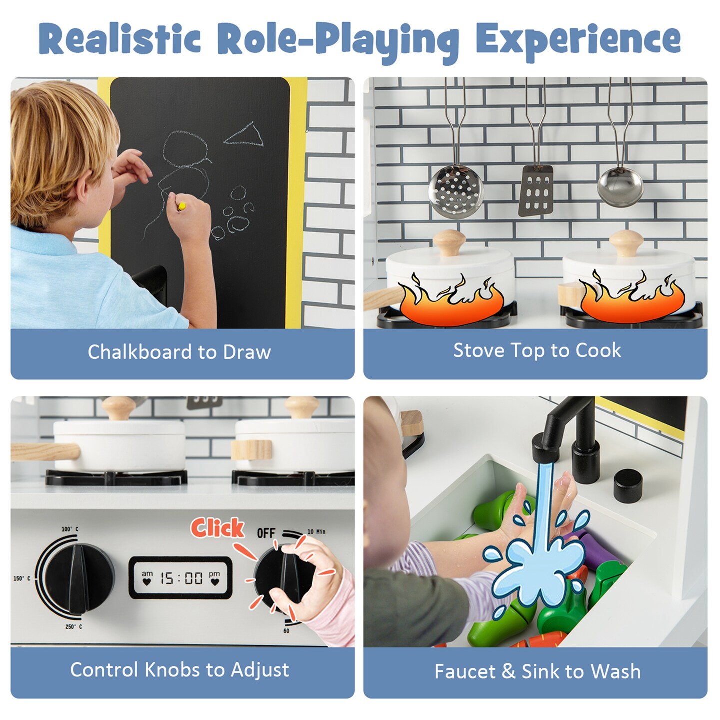 Costway Kids Farmhouse Kitchen Play Set Wooden Pretend Toy with Storage & Accessories