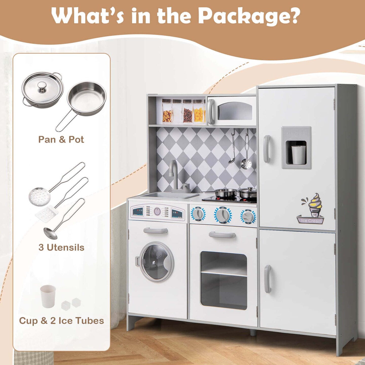 Costway Kids Kitchen Playset with Realistic Lights & Sounds Ice Maker Stoves Sink Oven