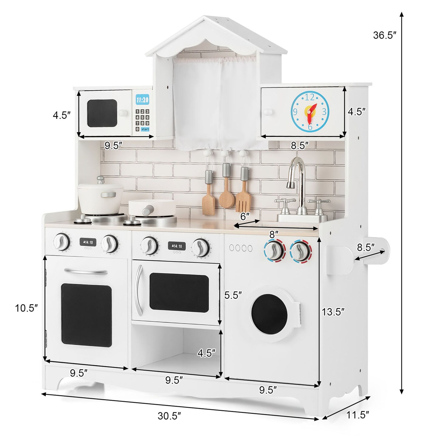 Costway Kids Play Kitchen Wooden Cooking Pretend Playset Cookware Toddler Gift
