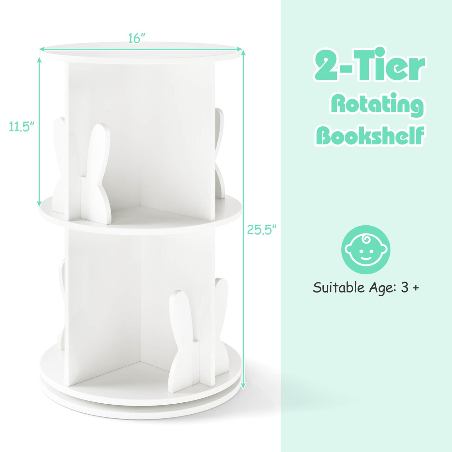 Costway Kids Rotating Bookshelf 2 Tier Freestanding 360° Revolving Display Storage Rack White/Pink