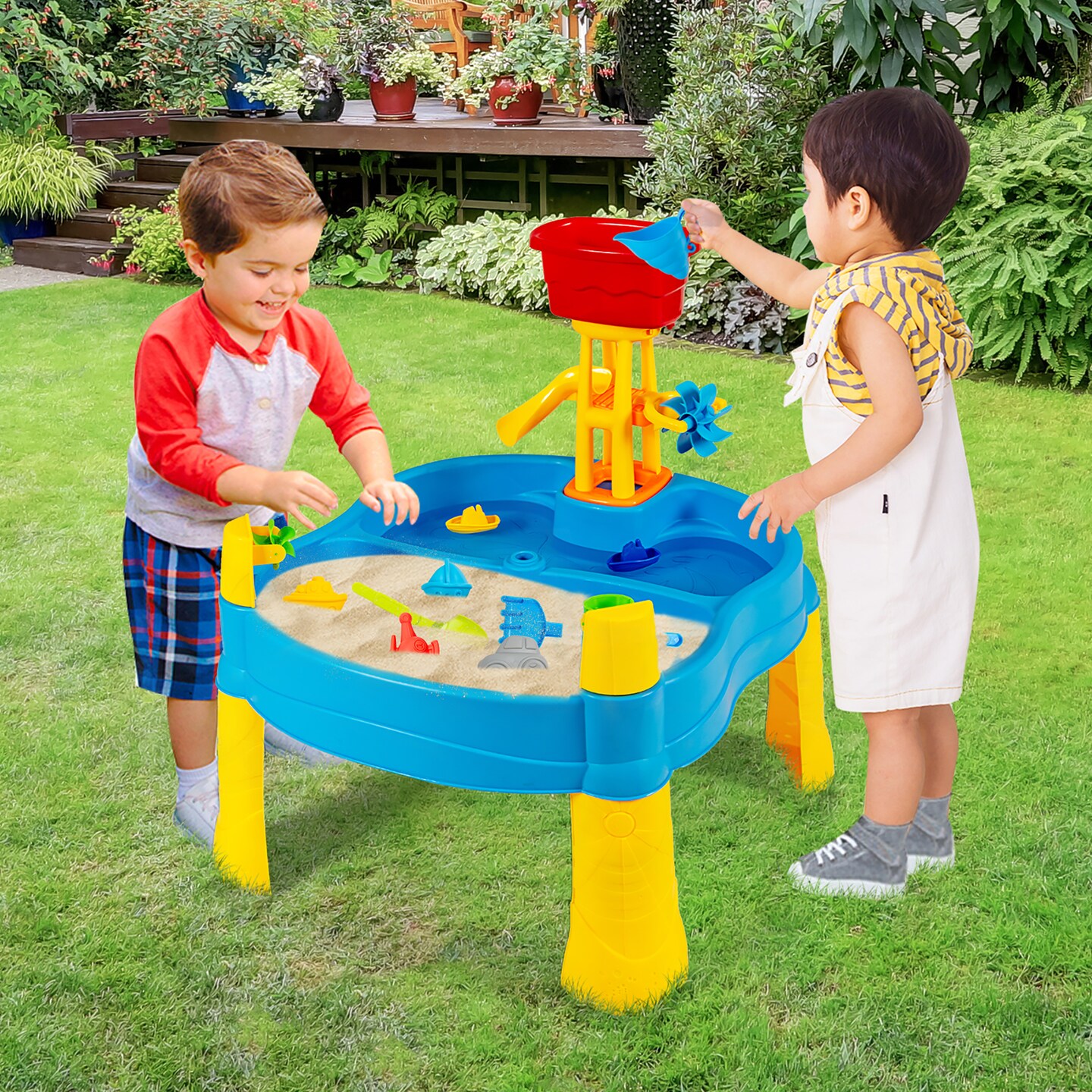 Costway Kids Sand and Water Table Activity Table Sandbox w/ 18 Pcs Accessories